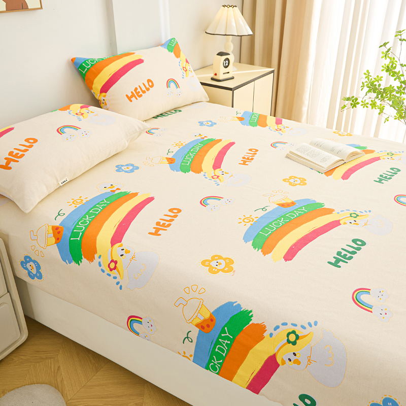 • 91家纺网 家纺一手货源 找家纺 首爱2025新款原棉老粗布床笠支持特殊规格定制 常年不断货 大批量供应  彩虹鸭鸭