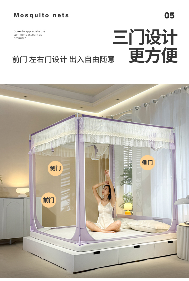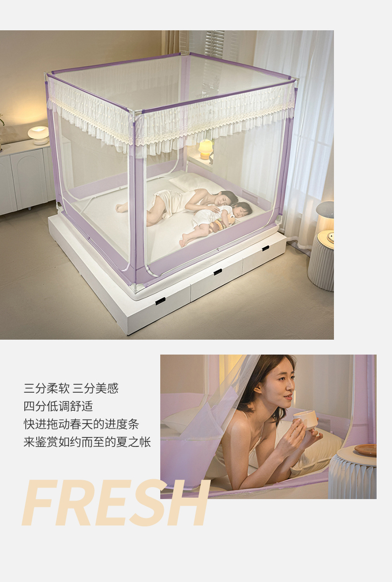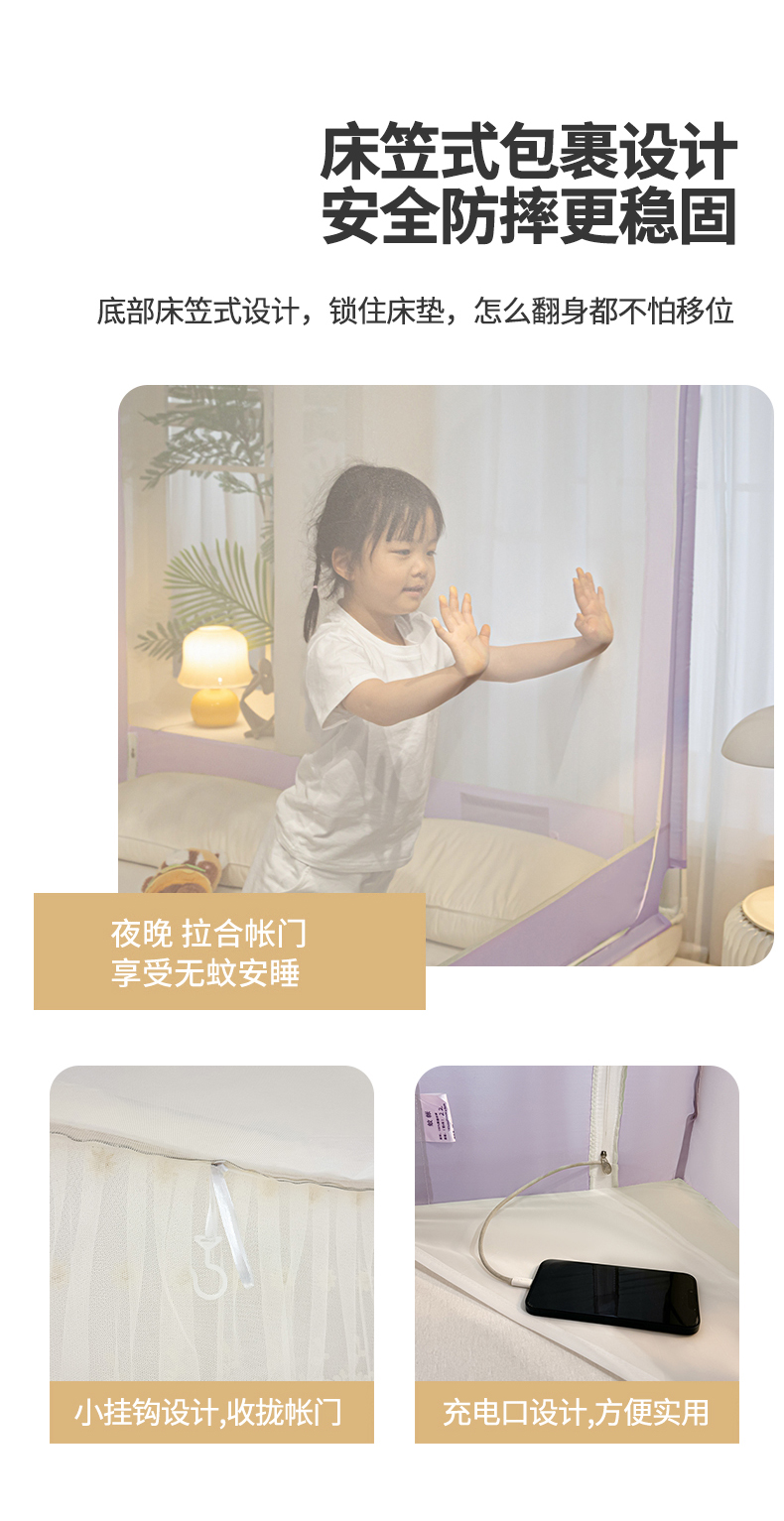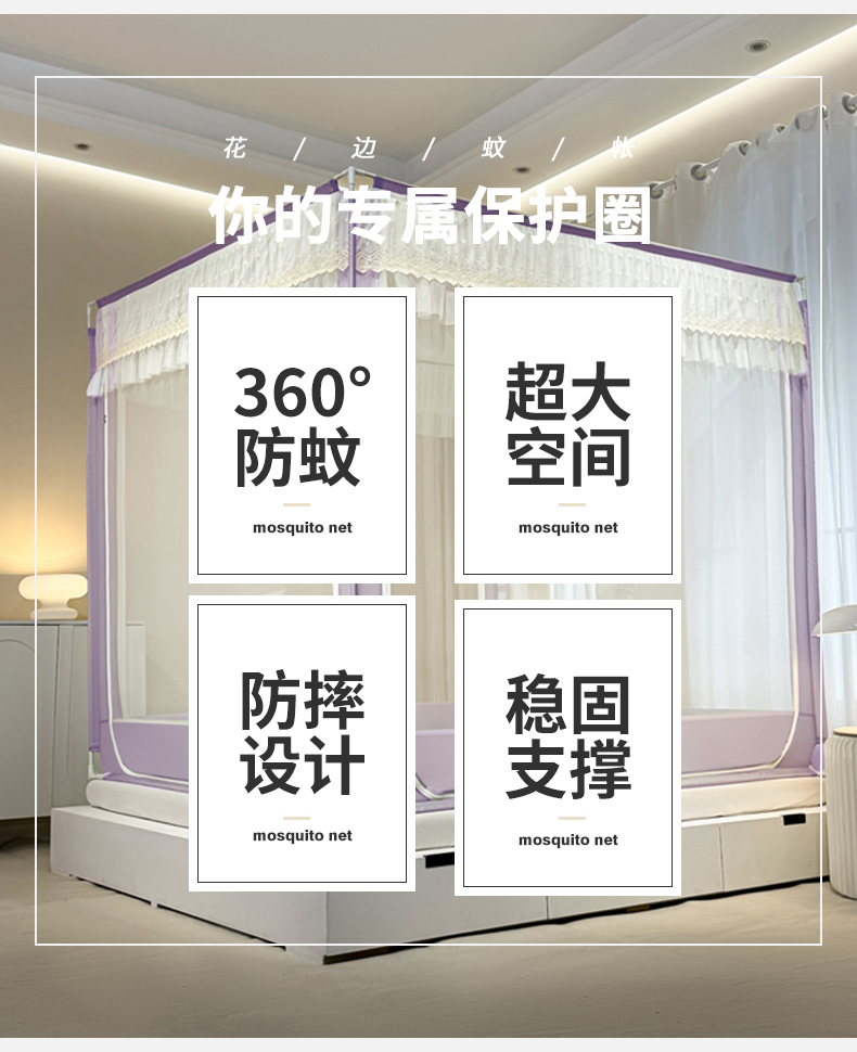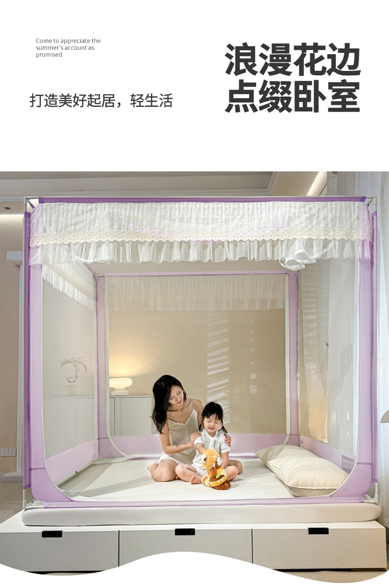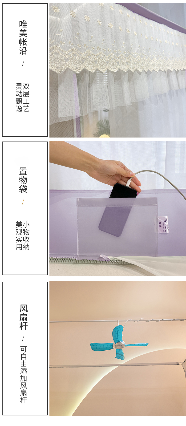 商品名称:青竹苑2025新款花边款床笠底防摔坐床蚊帐-铃兰花开 铃兰花开-暗夜紫