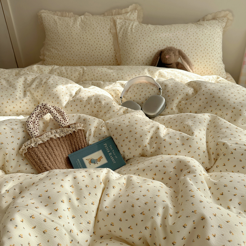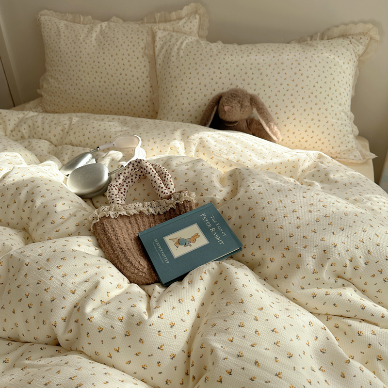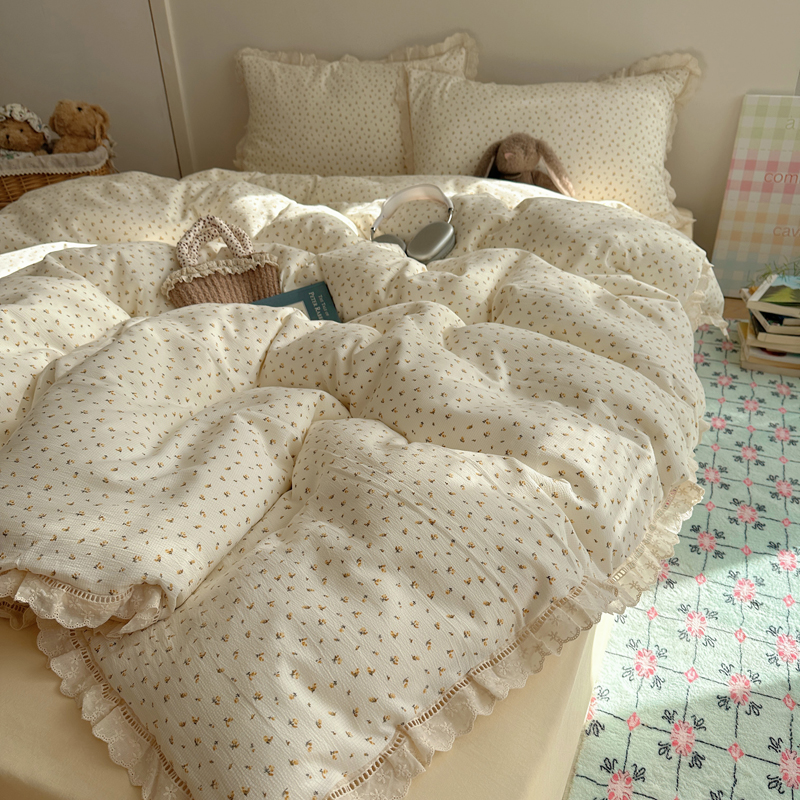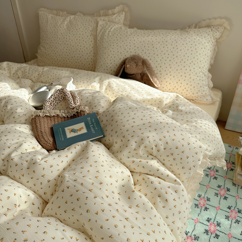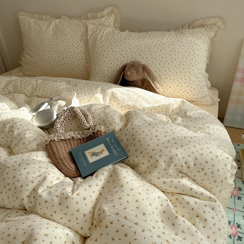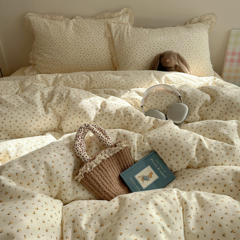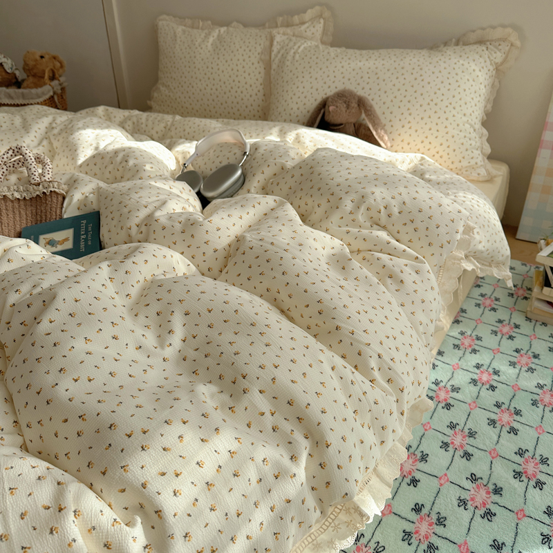 2025新款春日碎花云朵泡泡纱花边套件 复古碎花