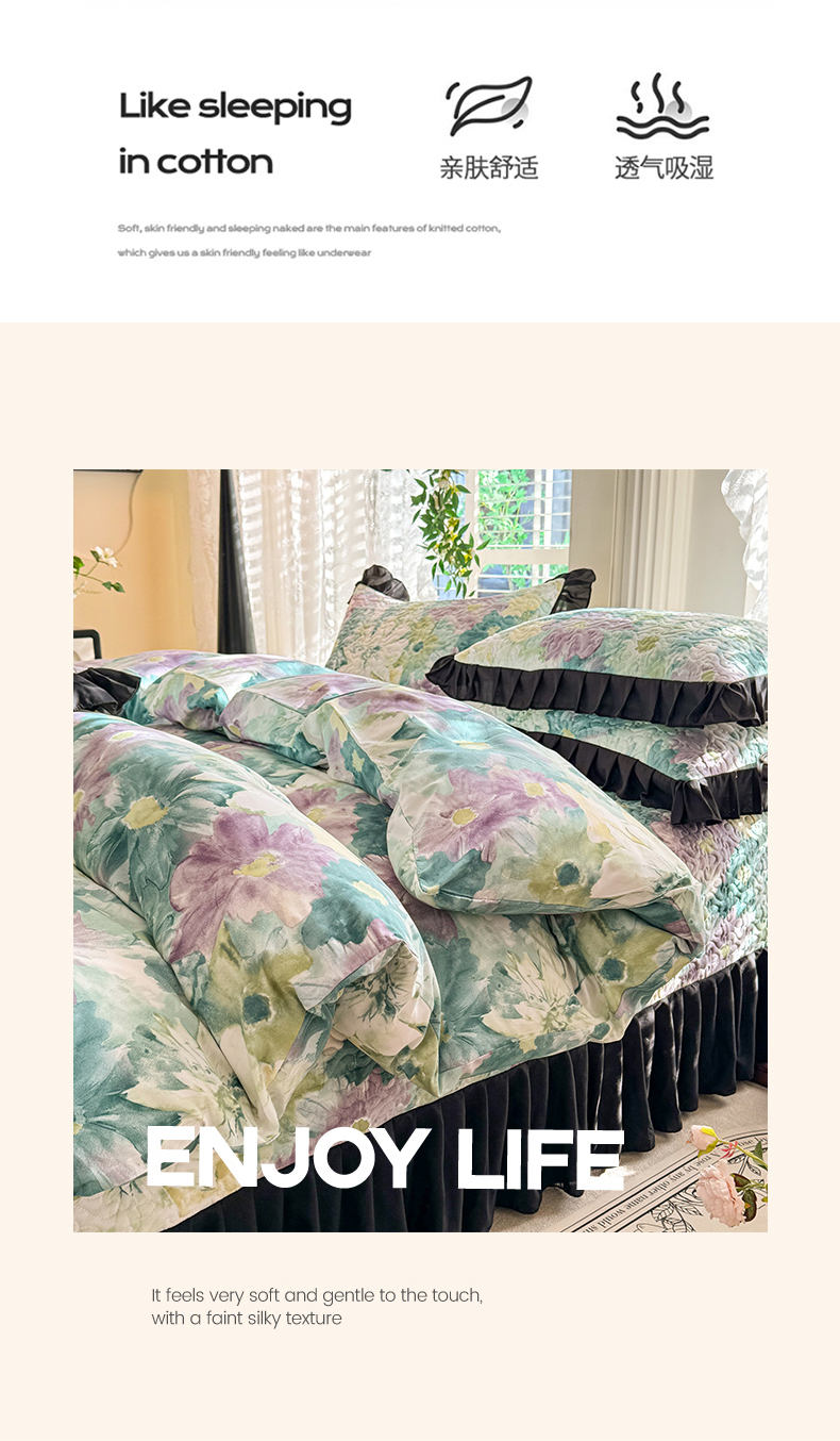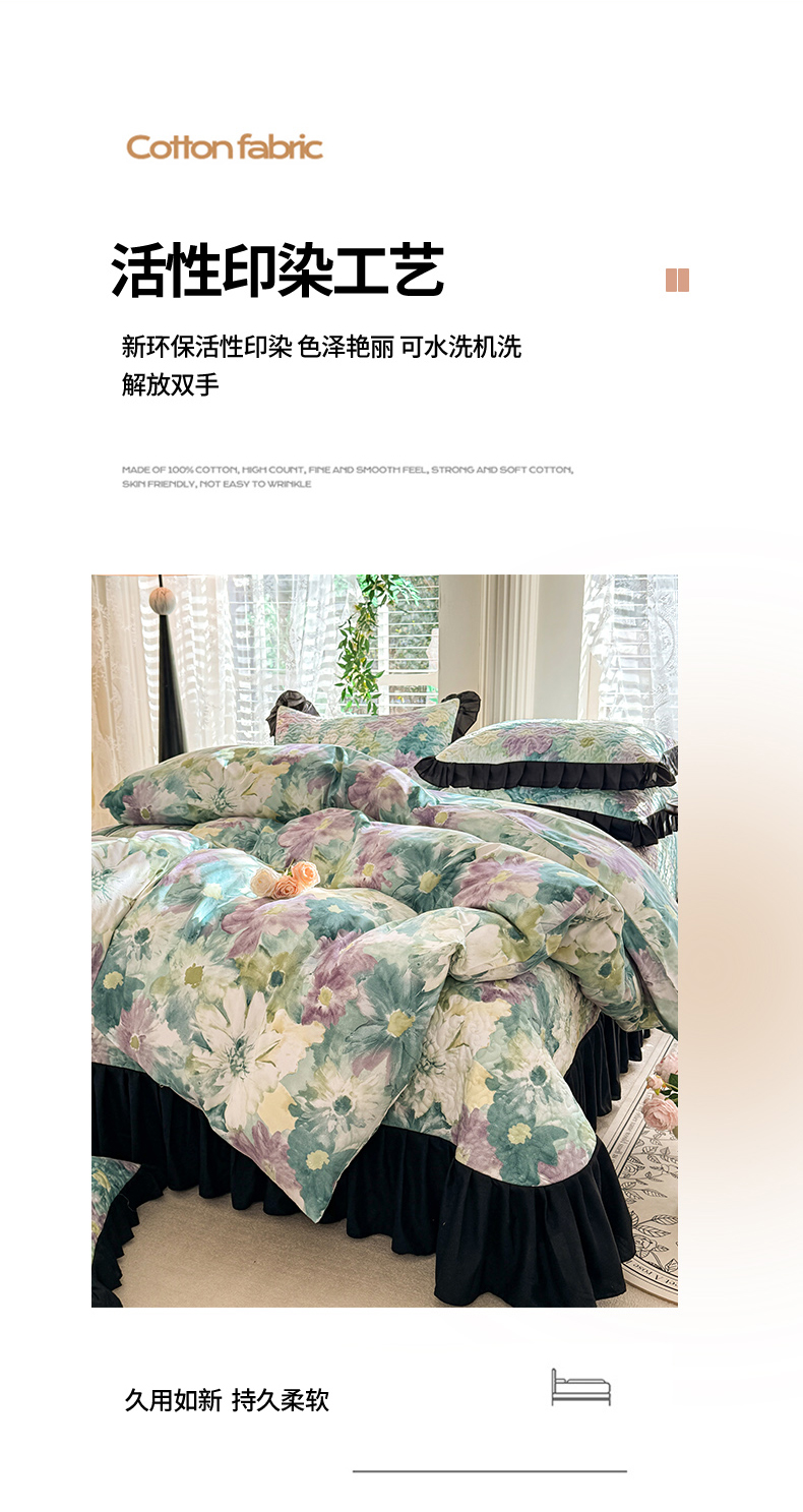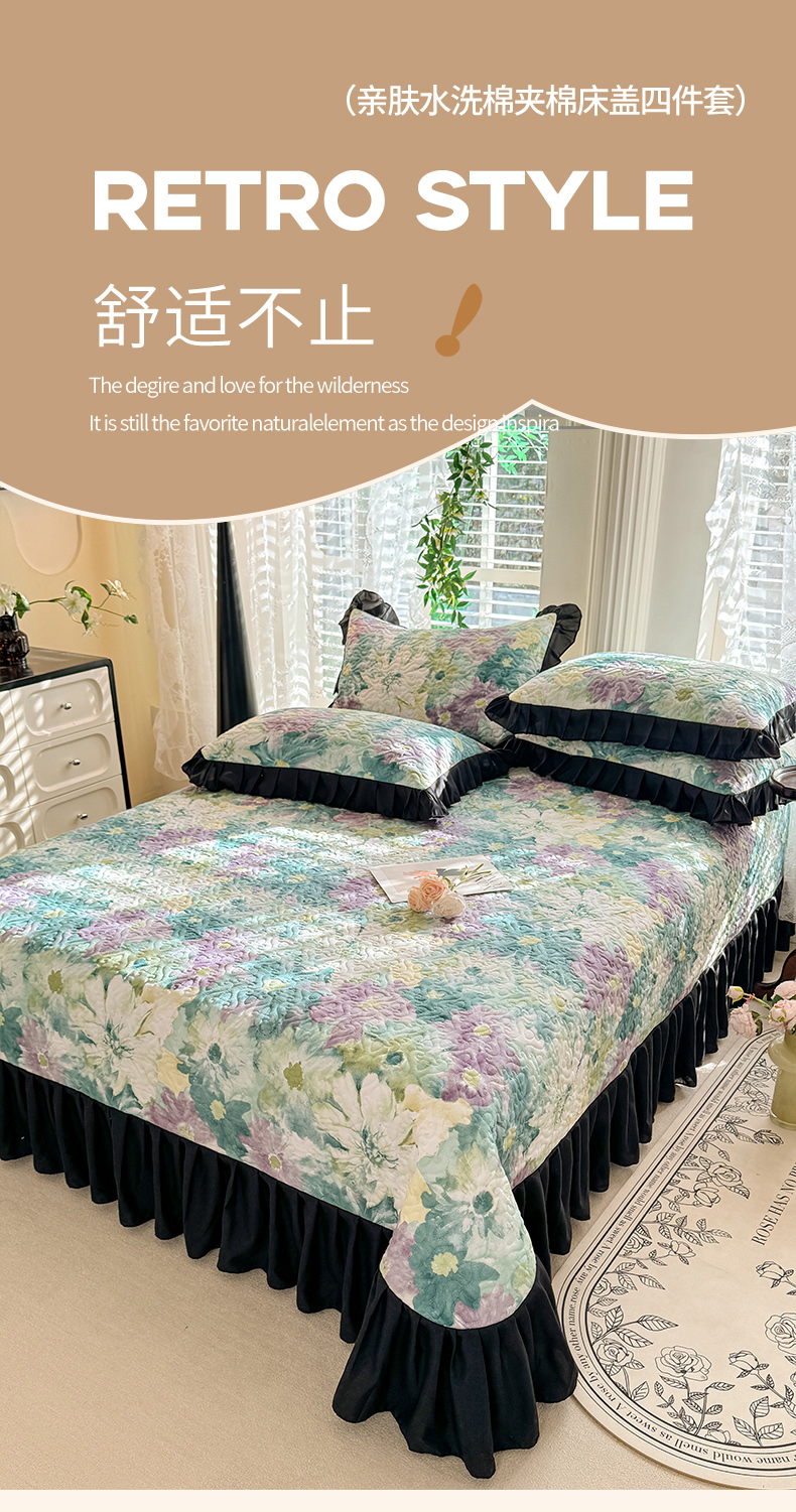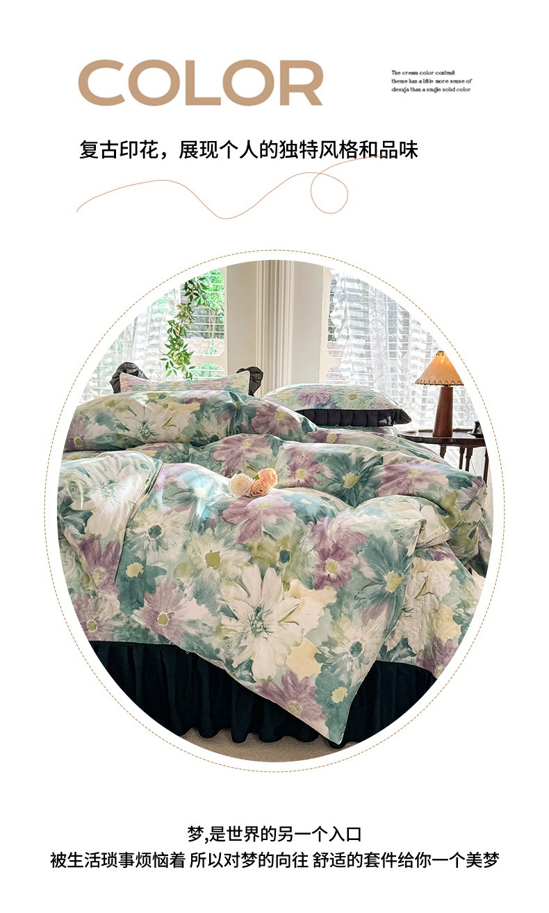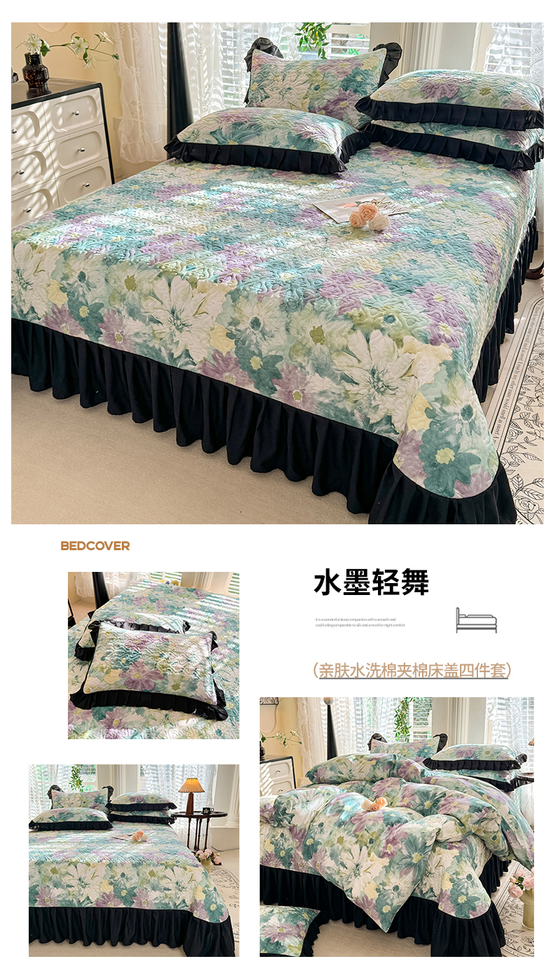 当前位置: 91家纺网 > 商品网购 > 床品套件 > 四件套 > 全棉普通四件套 > 金盛皇朝家纺 2025新款法式赫本风大花卉床盖四件套 水墨轻舞
