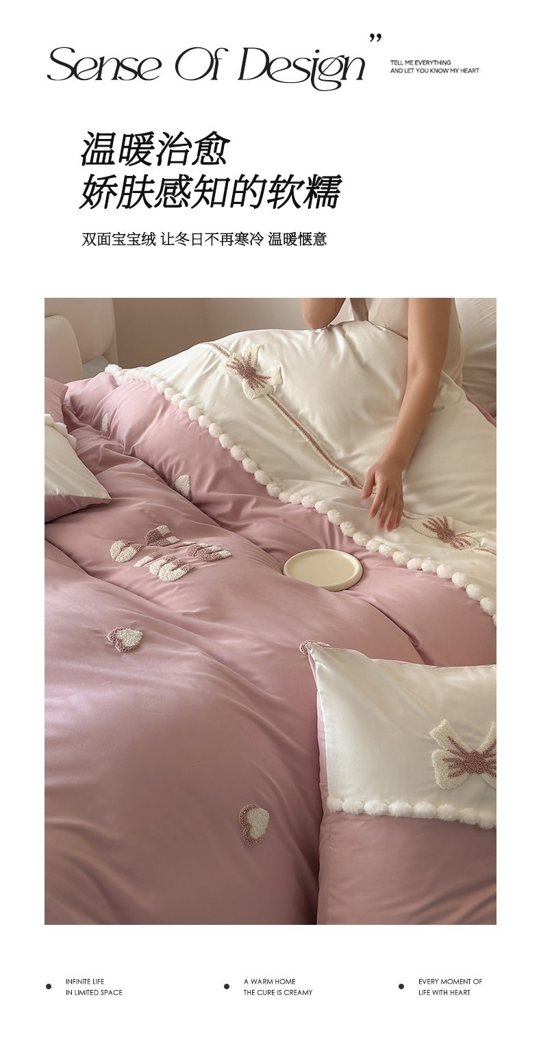 当前位置: 91家纺网 > 商品网购 > 床品套件 > 四件套 > 毛巾绣四件套 > 豪美鑫2025新款柔肤棉毛巾绣公主风爱恋四件套系列 爱恋-少女粉
