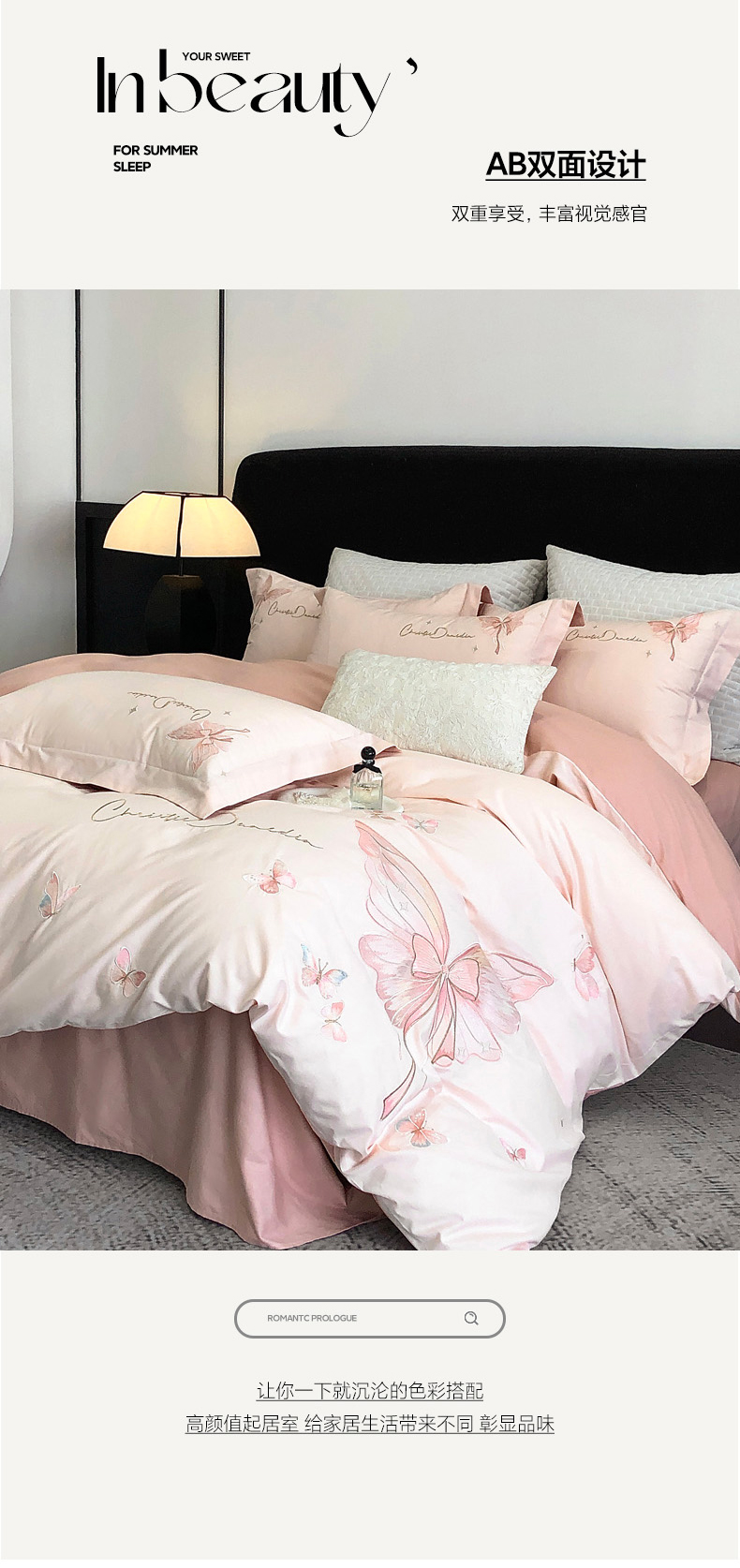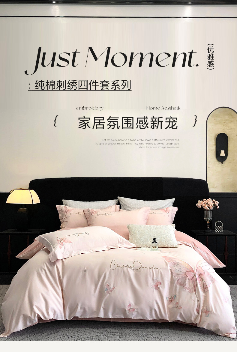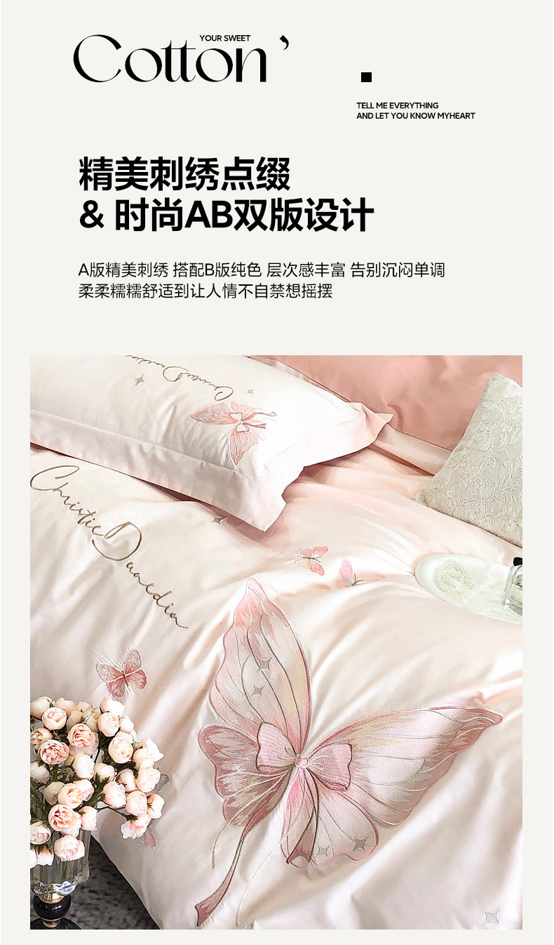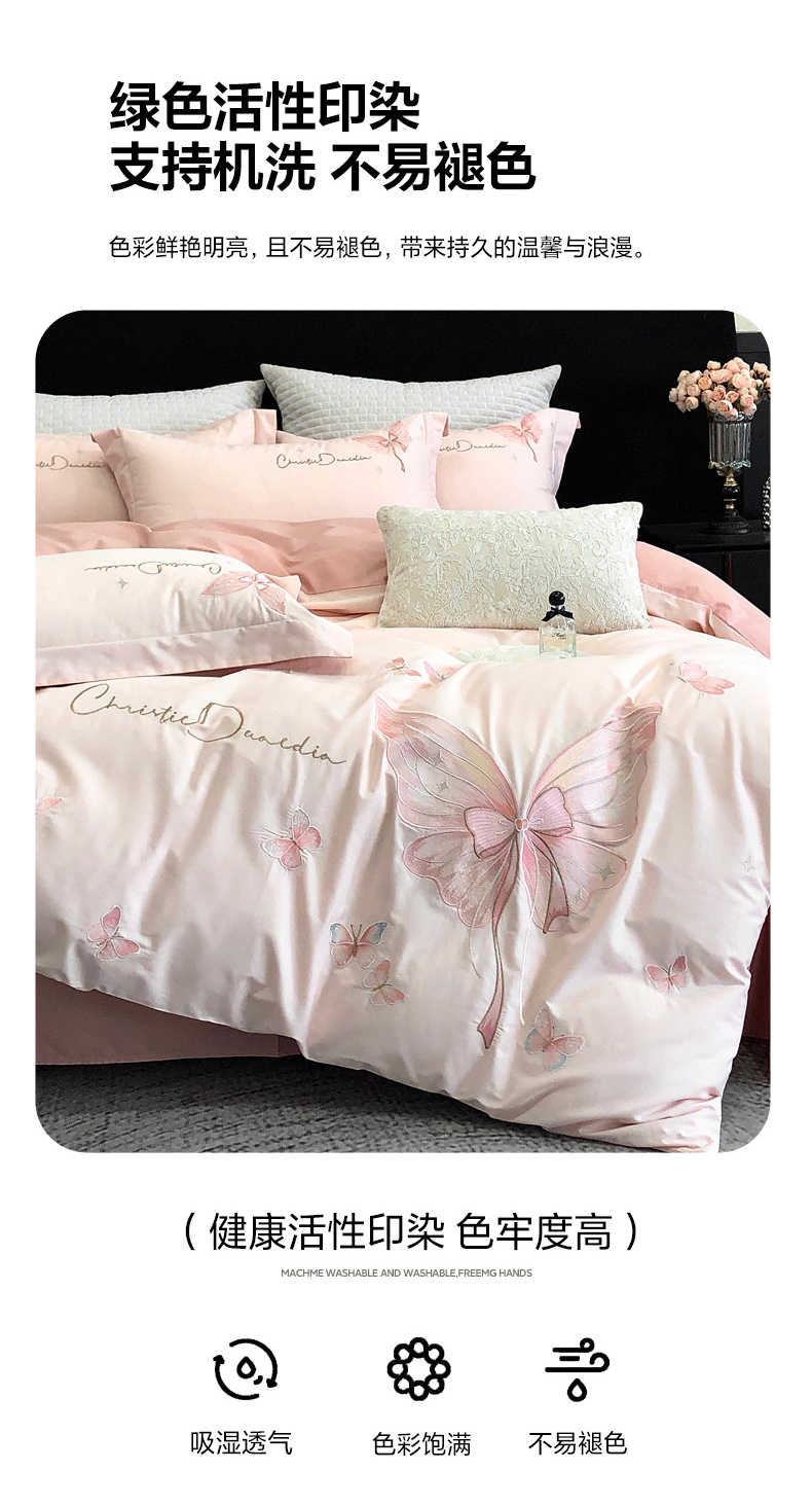 商品名称:万盛家纺2025新款全棉时尚刺绣花四件套--蝴蝶系列 玫瑰粉-泡沫粉