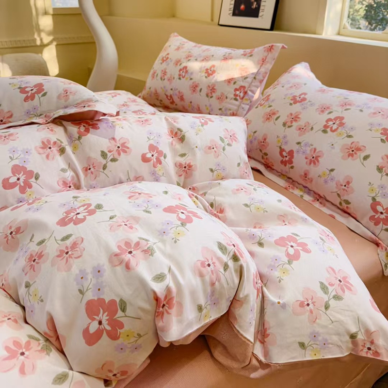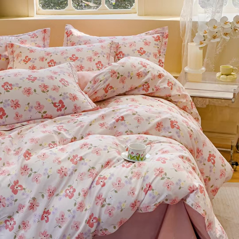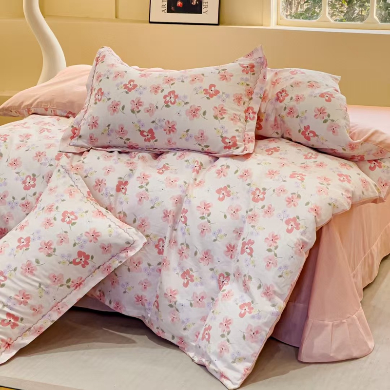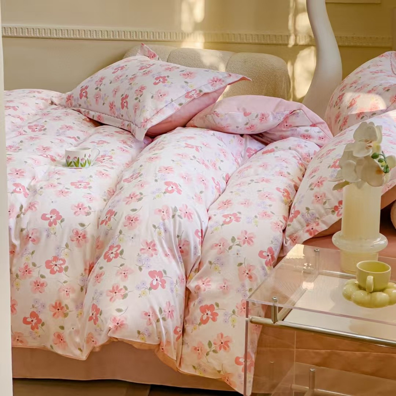 玖琳家纺 2025新款40s贡缎纯棉13372四件套芬芳 粉