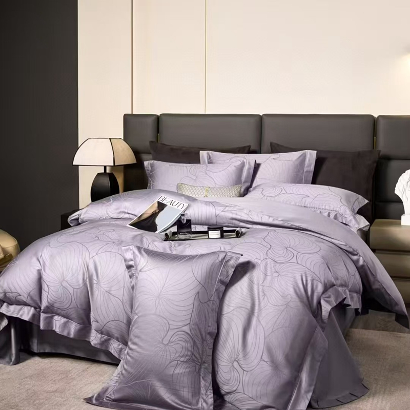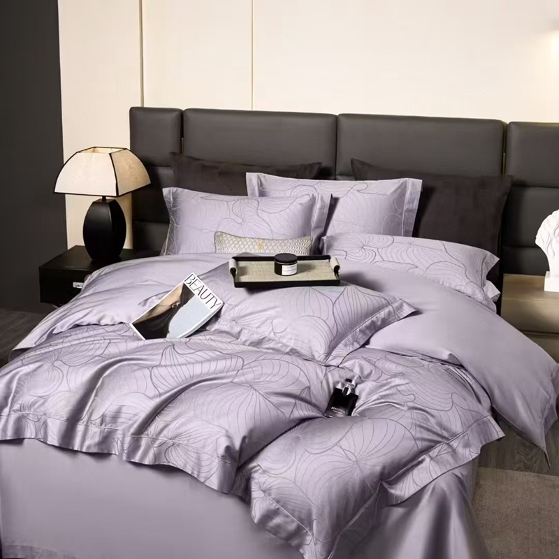 商品名称:玖琳家纺 2025新款100s提花高支高密新疆长绒棉四件套 黛西 紫色