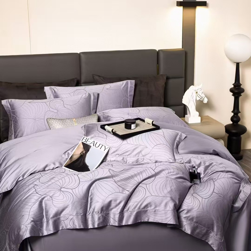 玖琳家纺 2025新款100s提花高支高密新疆长绒棉四件套 黛西 紫色