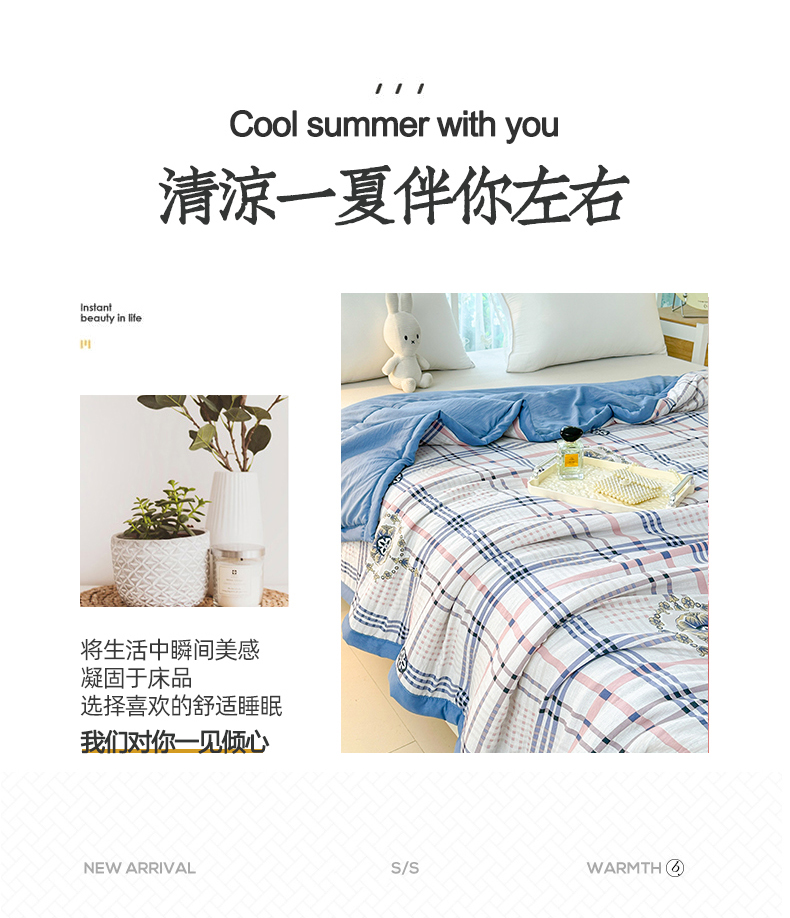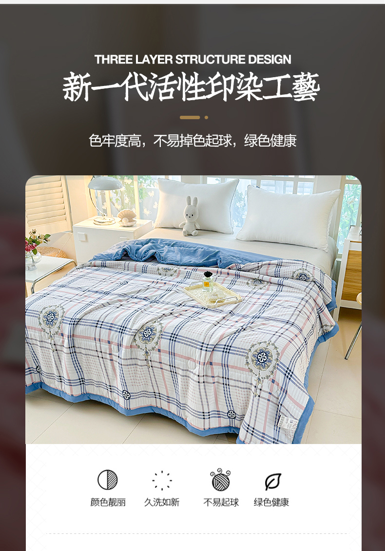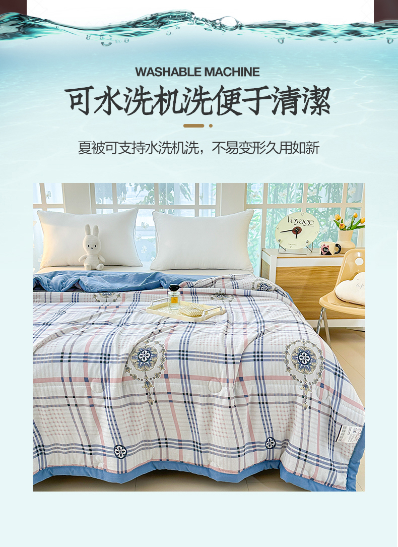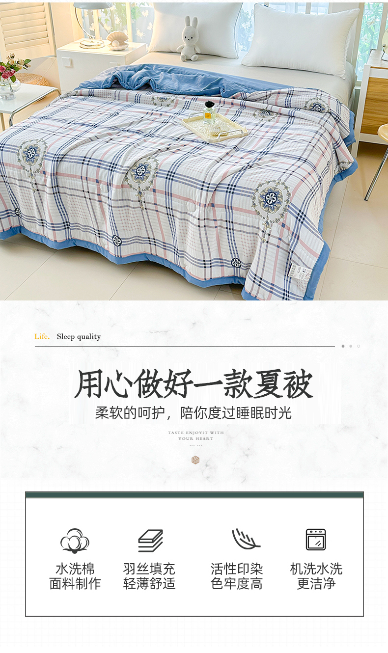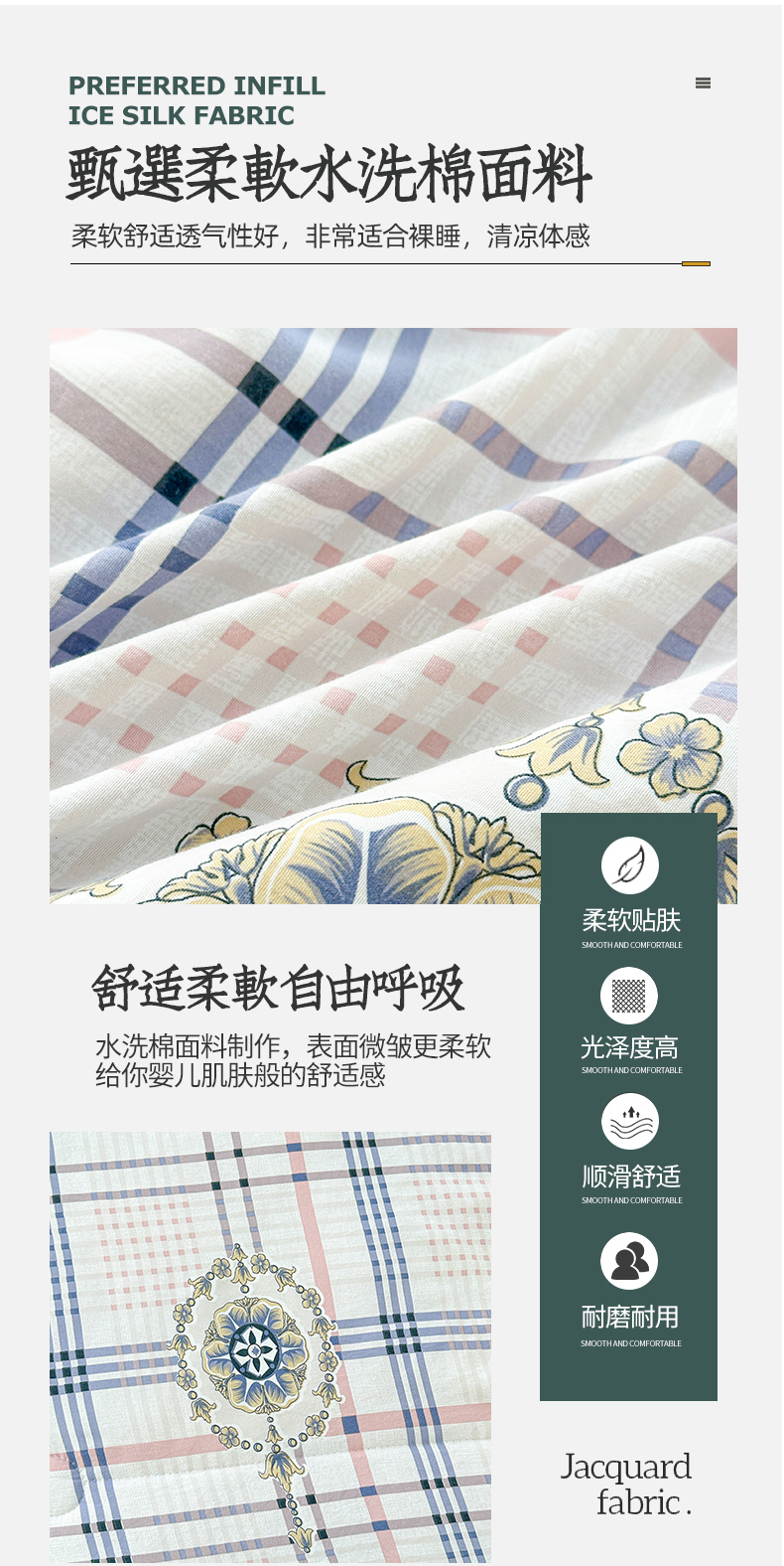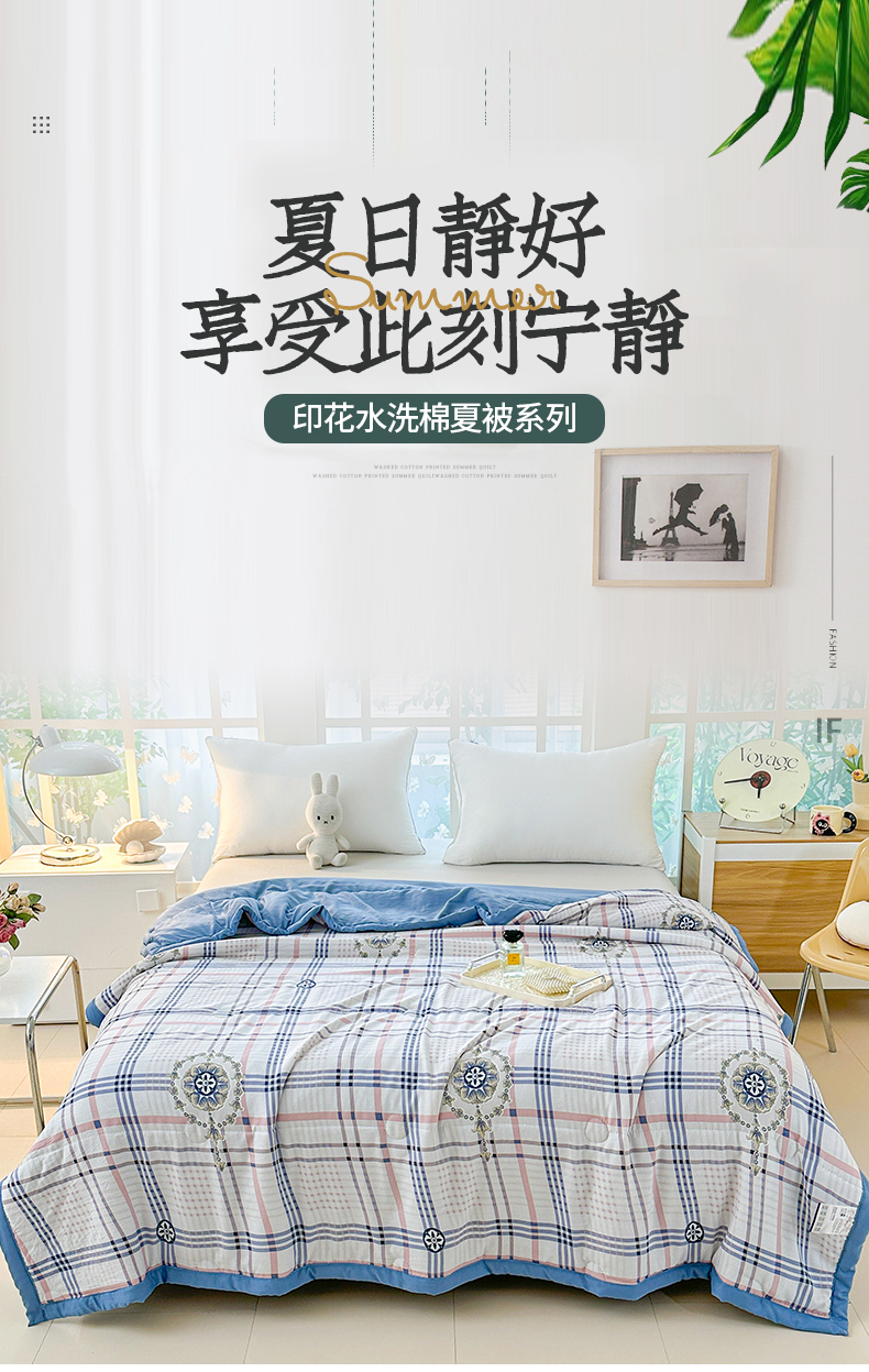 • 91家纺网 家纺一手货源 找家纺 好欣怡家纺 2026新款水洗棉夏被空调被被子被芯印花小清新夏凉被直播热款 水洗棉包边款-清雅格调