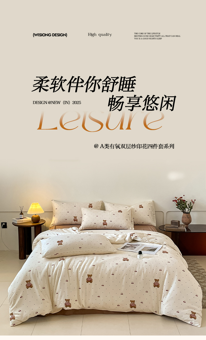 诺梵家纺 2025新款有氧双层纱印花四件套 叮当熊