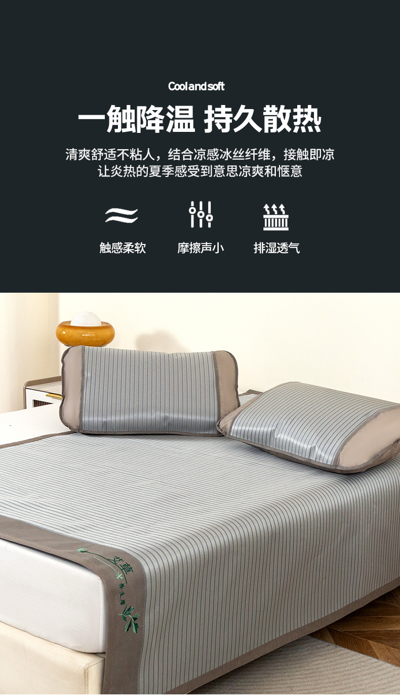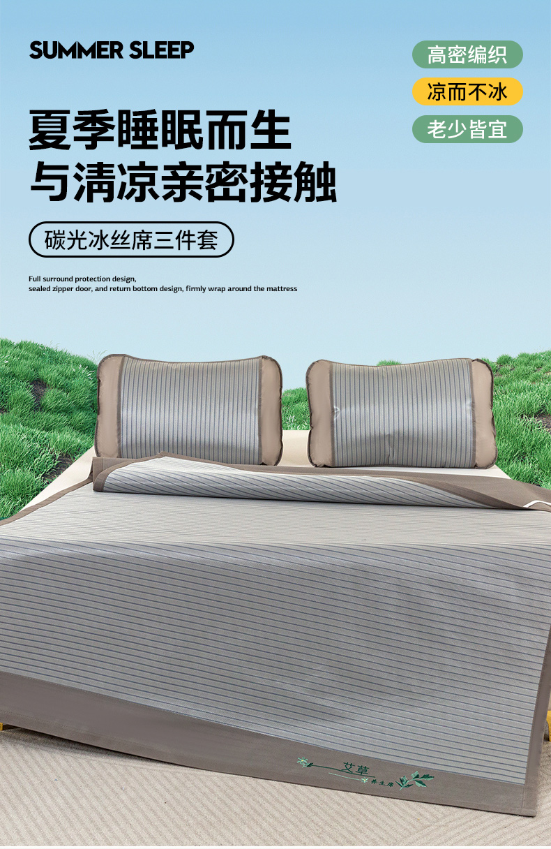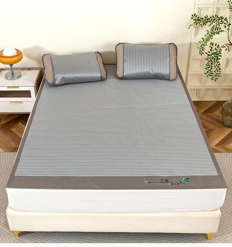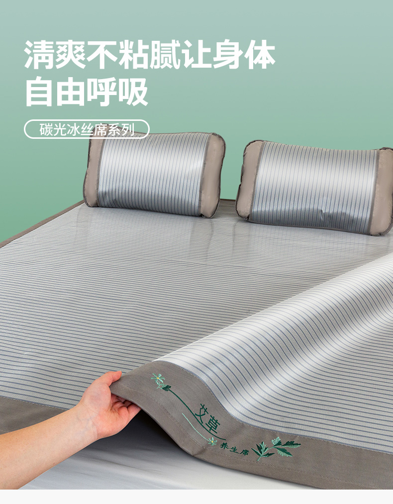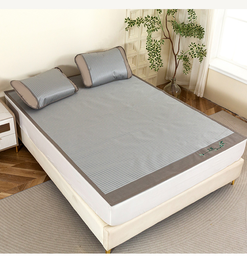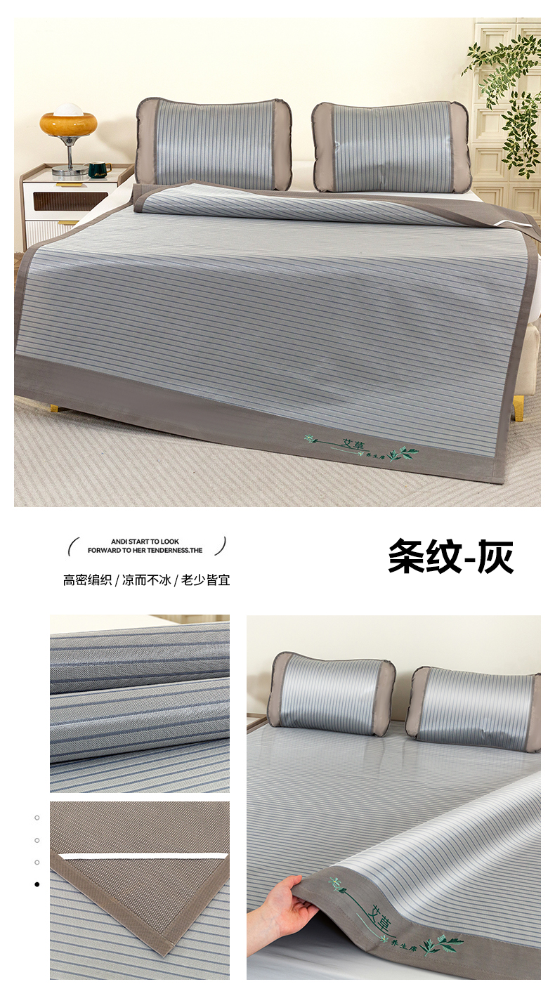 商品名称:丹兰 2025新款碳光冰丝席三件套竹席冰藤席艾草席学生席双人床凉席 碳光条纹 灰