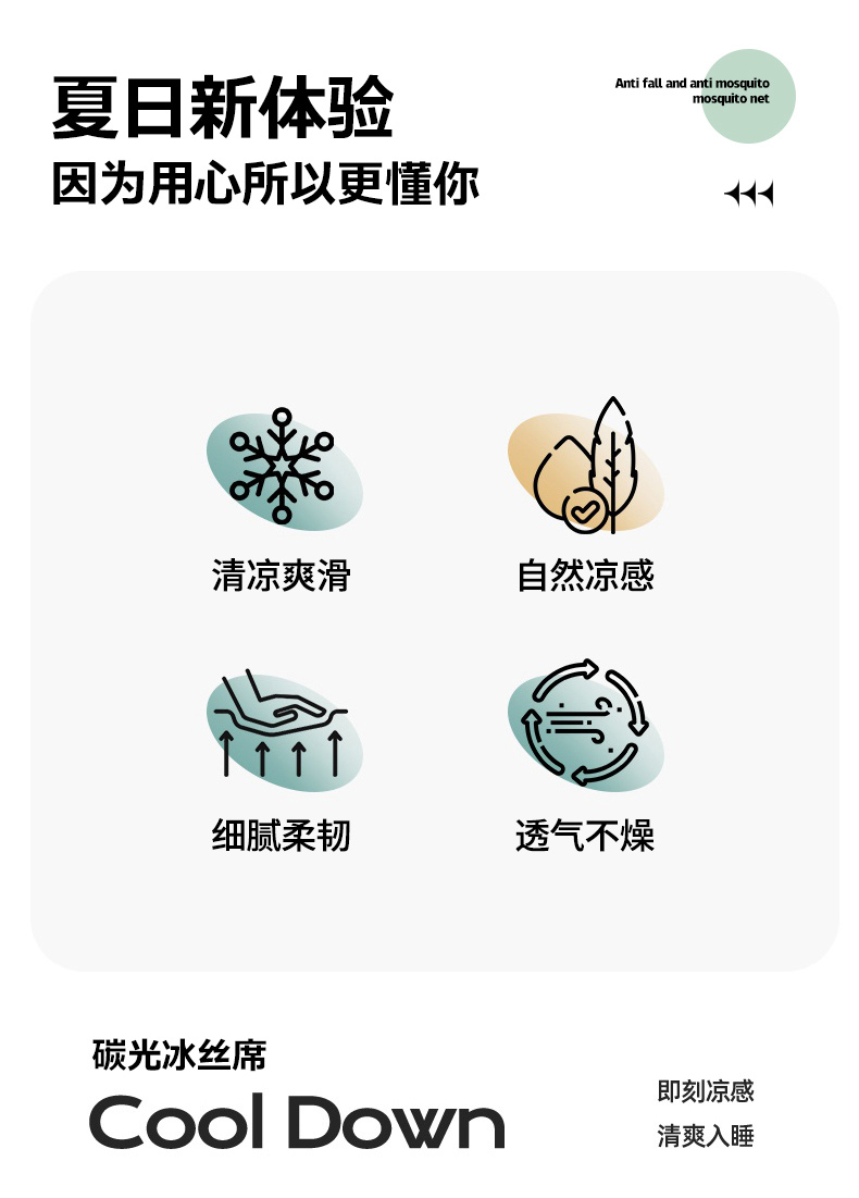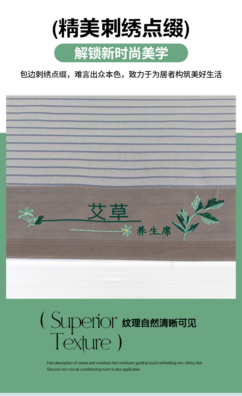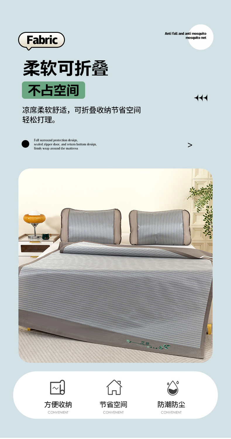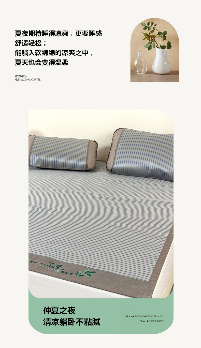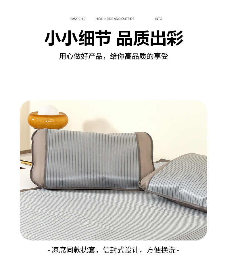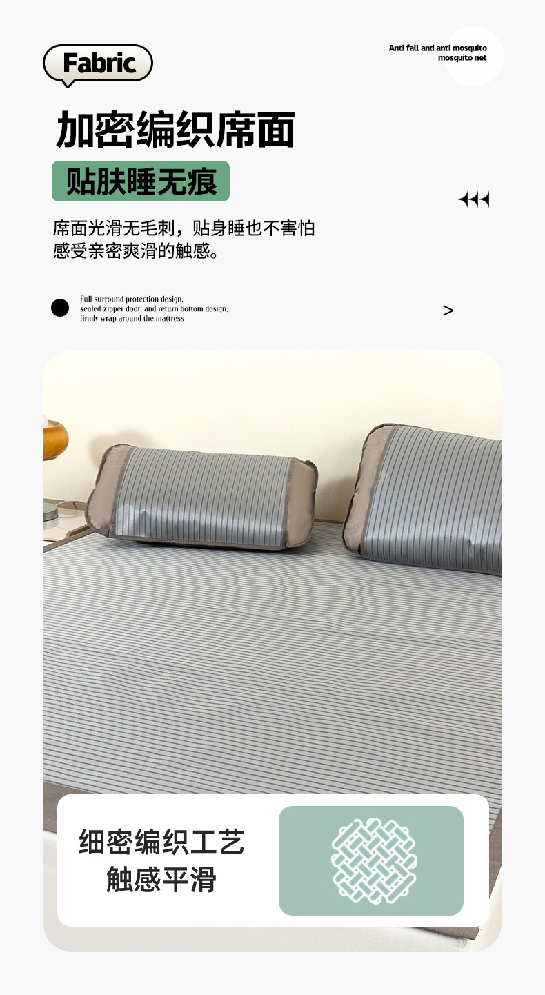 商品名称:丹兰 2025新款碳光冰丝席三件套竹席冰藤席艾草席学生席双人床凉席 碳光条纹 灰