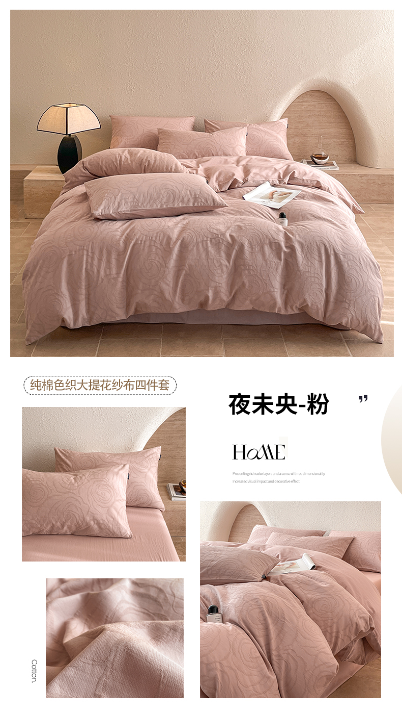 商品名称:宜代光年 2025新款全棉色织水洗棉大提花四件套(第二批) 陌上花开-粉