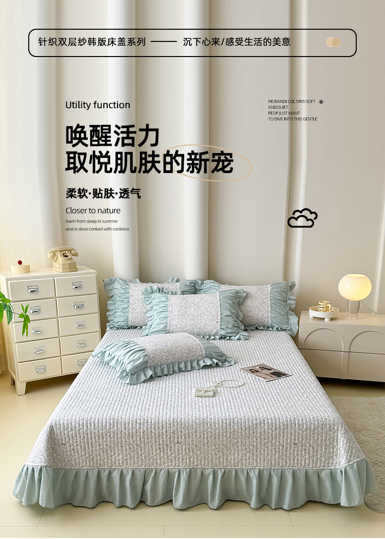 商品名称:ME/ERA HOME寐时代 2025新款针织双层纱韩版床盖 安琪拉兔