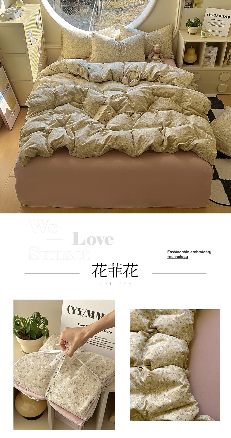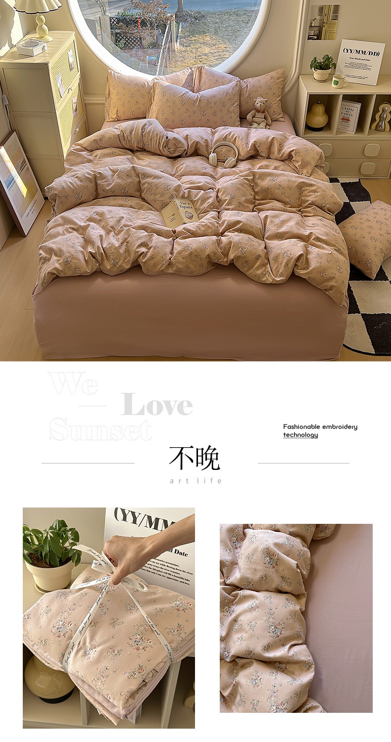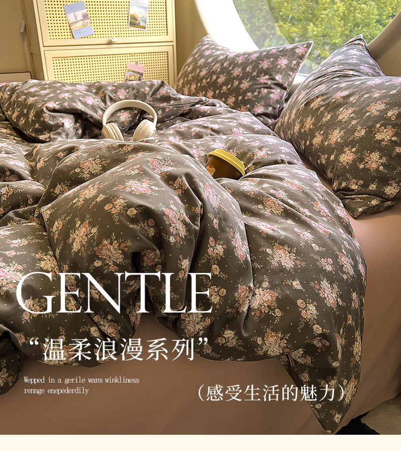 花漾家居 2024新款宽边牛奶绒四件套 秋日恋曲,秋日恋曲