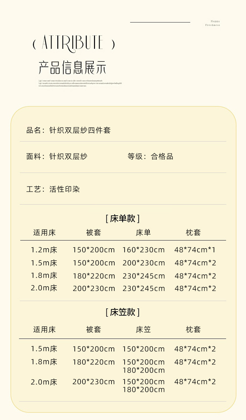商品名称:(总)花漾家居 2025新款针织双层纱被套枕套四件套