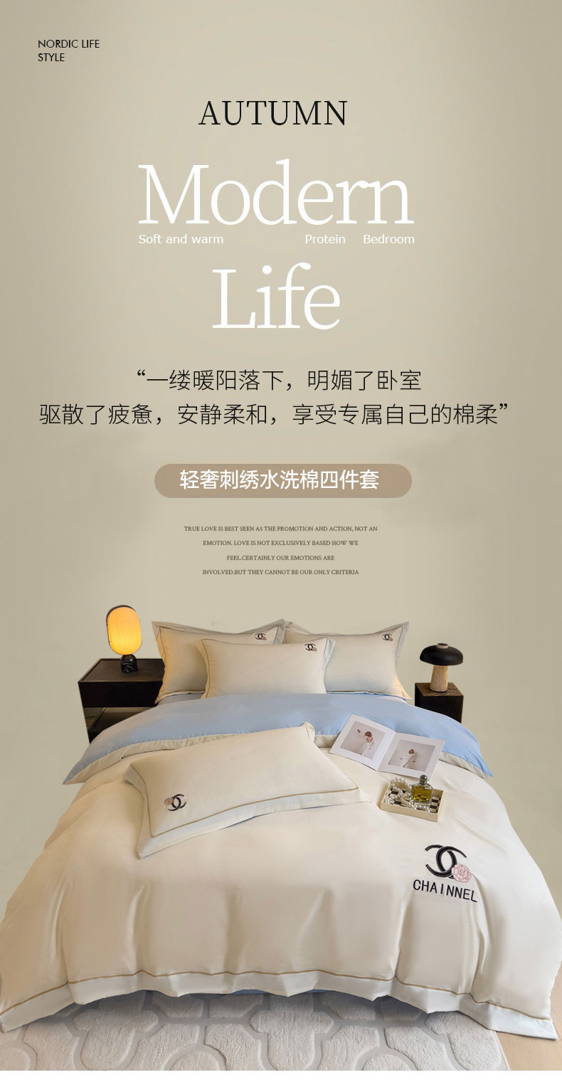 当前位置: 91家纺网 > 商品网购 > 床品套件 > 四件套 > 水洗棉四件套 > 灰鲸 2025新款轻奢洛可刺绣水洗棉套件系列 洛可-奶昔白+天空蓝