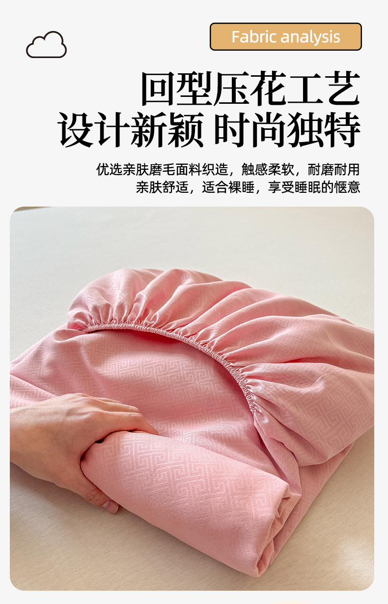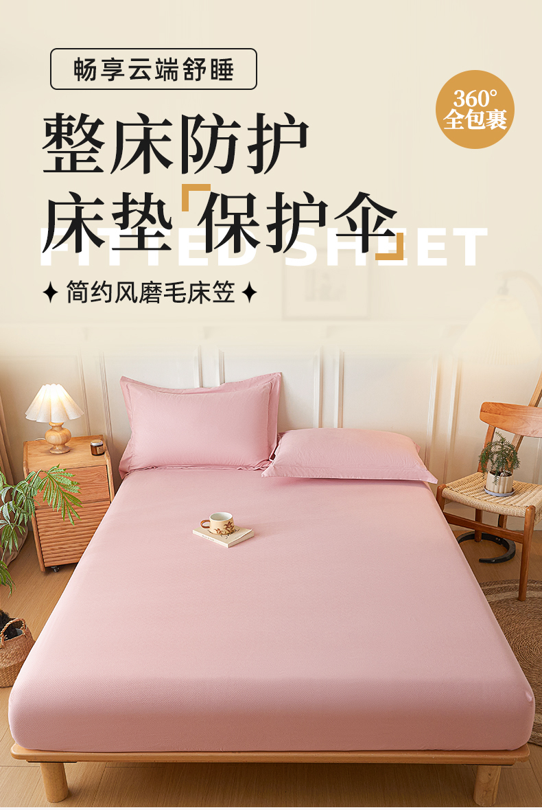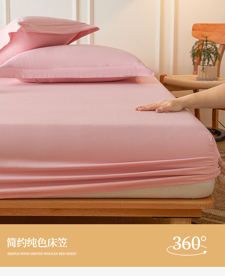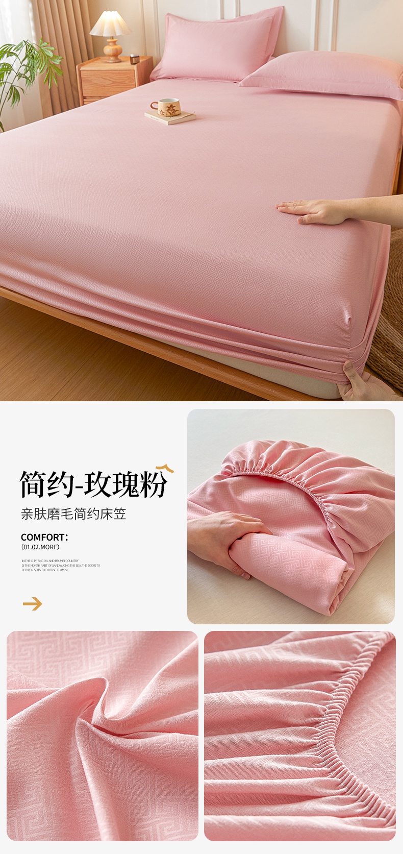 商品名称:2025内销外贸压花磨毛单床笠三件套 简约-玫瑰粉