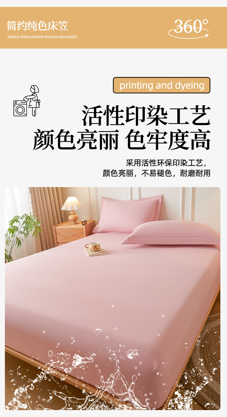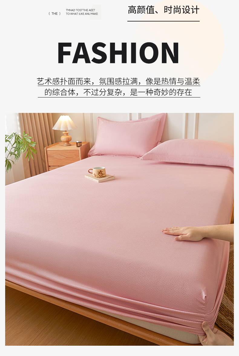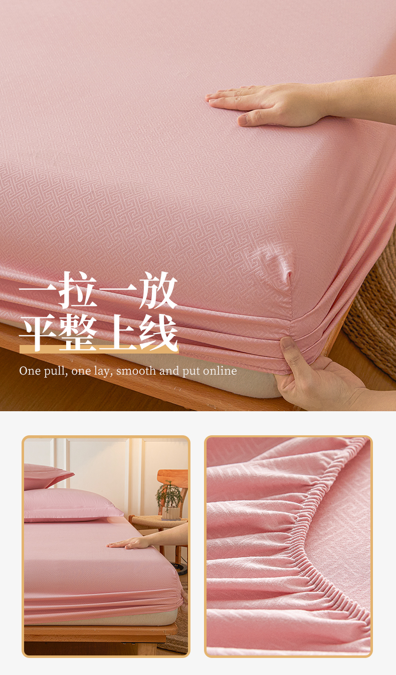 商品名称:2025内销外贸压花磨毛单床笠三件套 简约-玫瑰粉