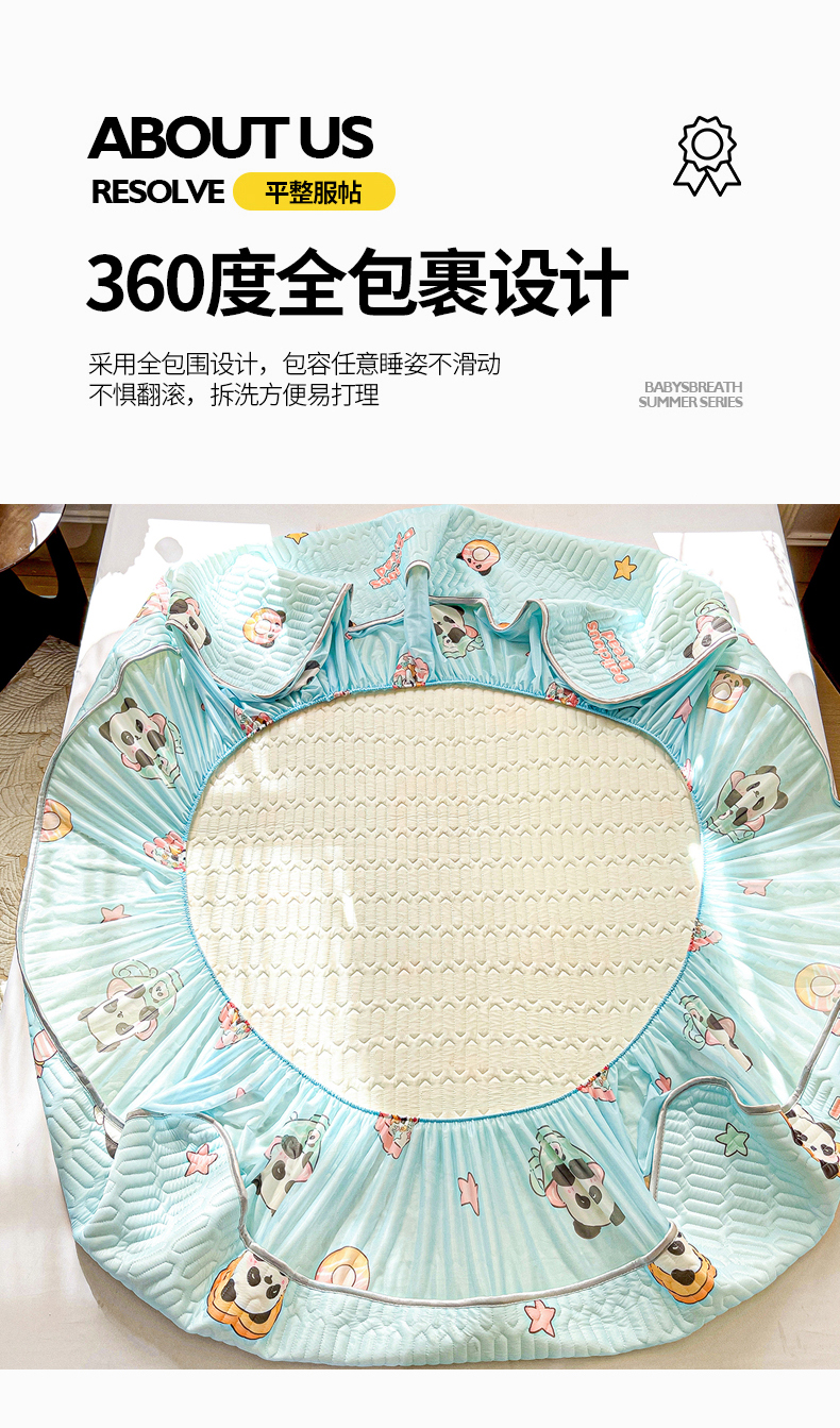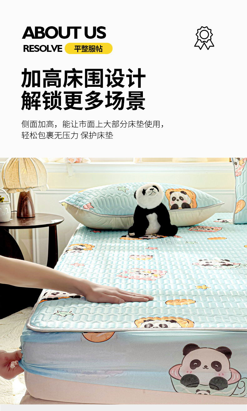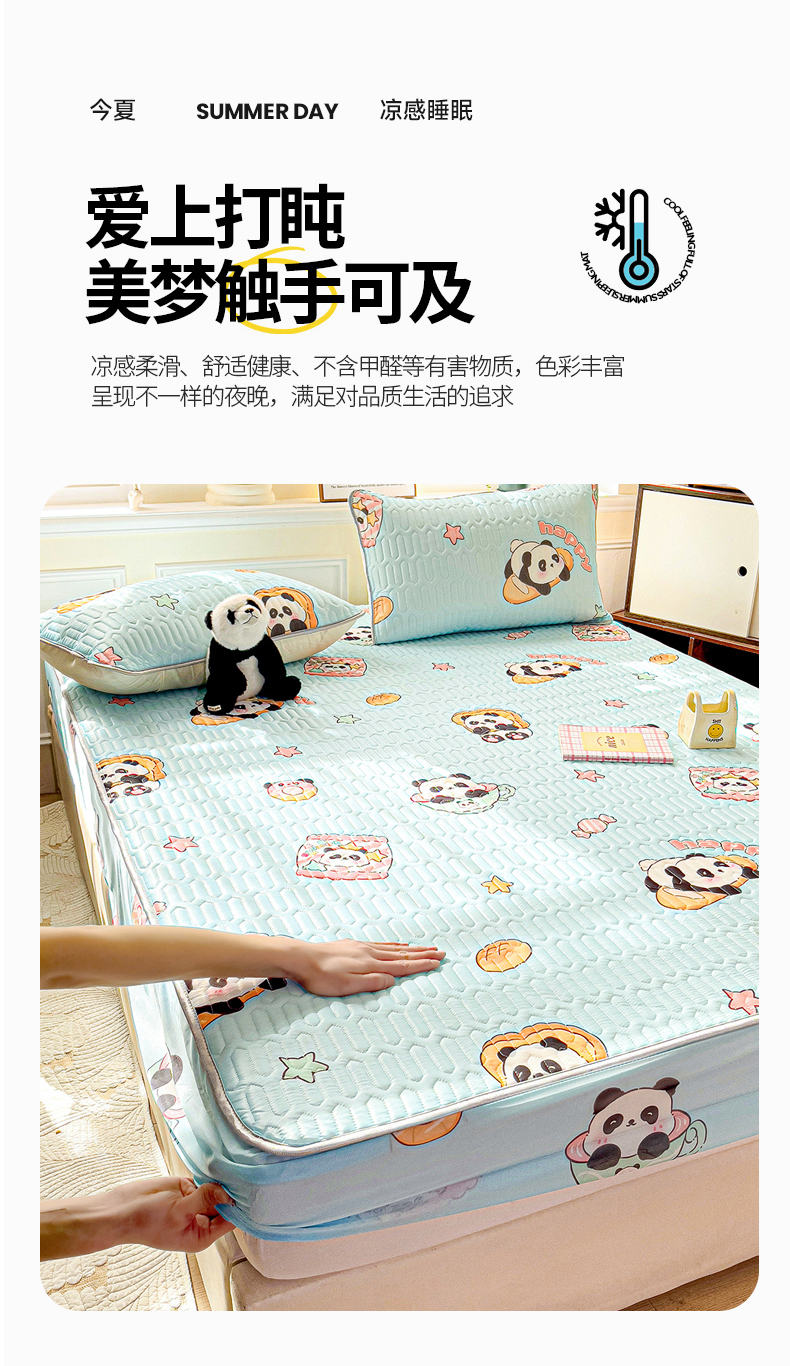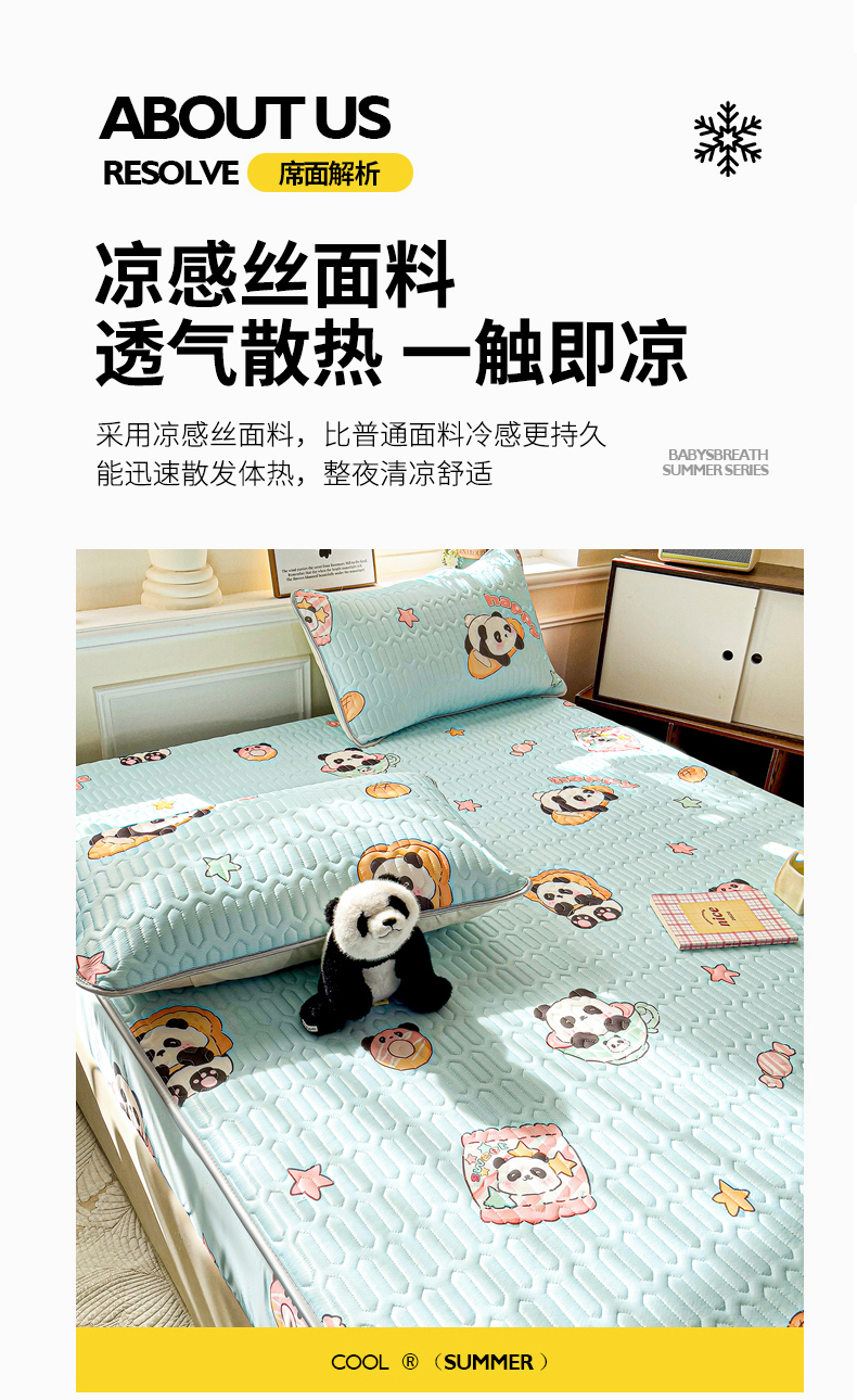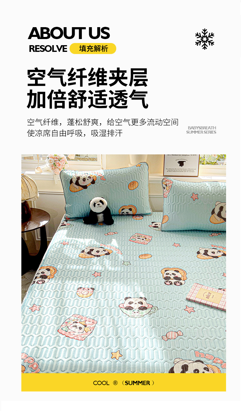 • 91家纺网 家纺一手货源 找家纺 富馨莱 2025新款A类凉感丝空气纤维凉席床笠款 熊猫宝宝