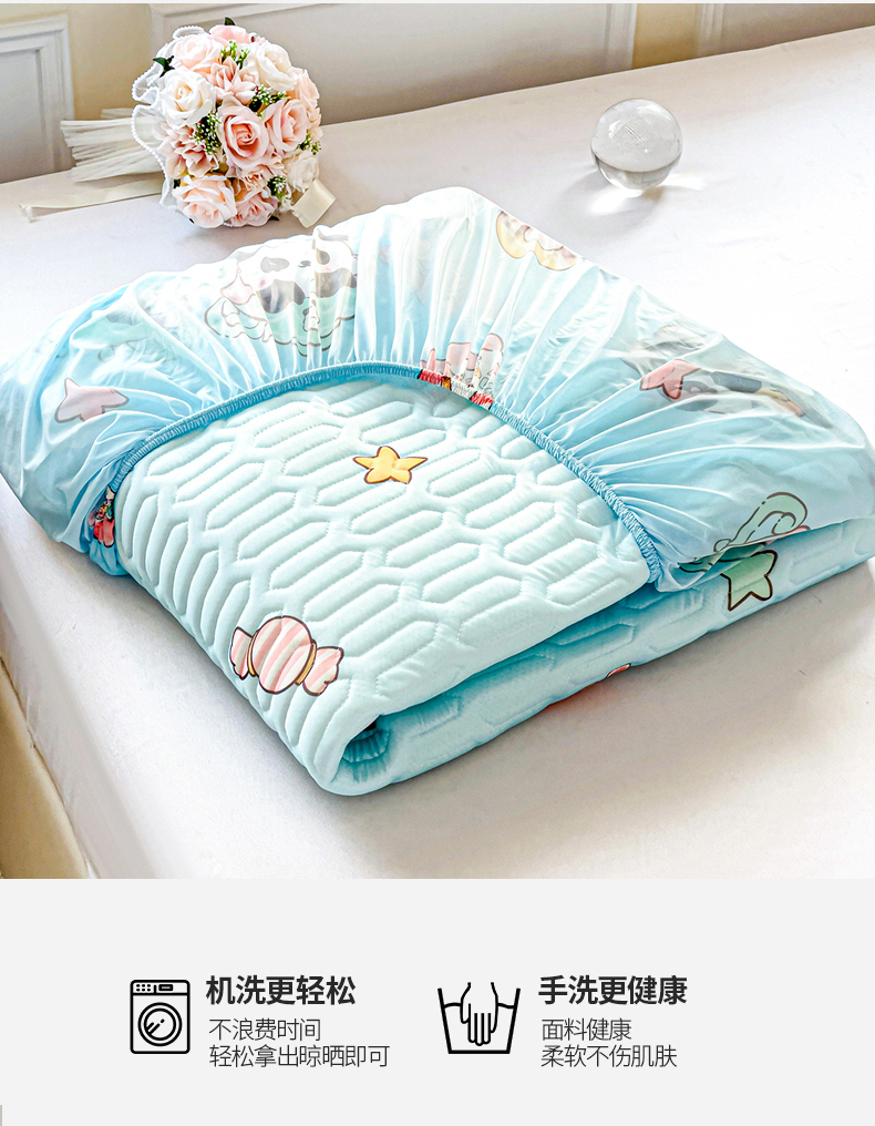 (总)富馨莱 2025新款牛奶绒夹棉床垫床盖支持一件定制,飞行太空,格子熊猫,孔雀蓝,恐龙伙伴,抹茶绿,七彩草莓,轻奢白,轻奢灰,小精灵,小柯基,樱桃兔,脏脏熊,组合图
