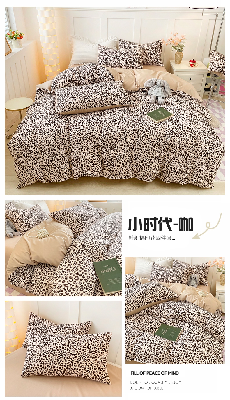 汣沐生活 2025新款针织棉印花款四件套 小时代-咖