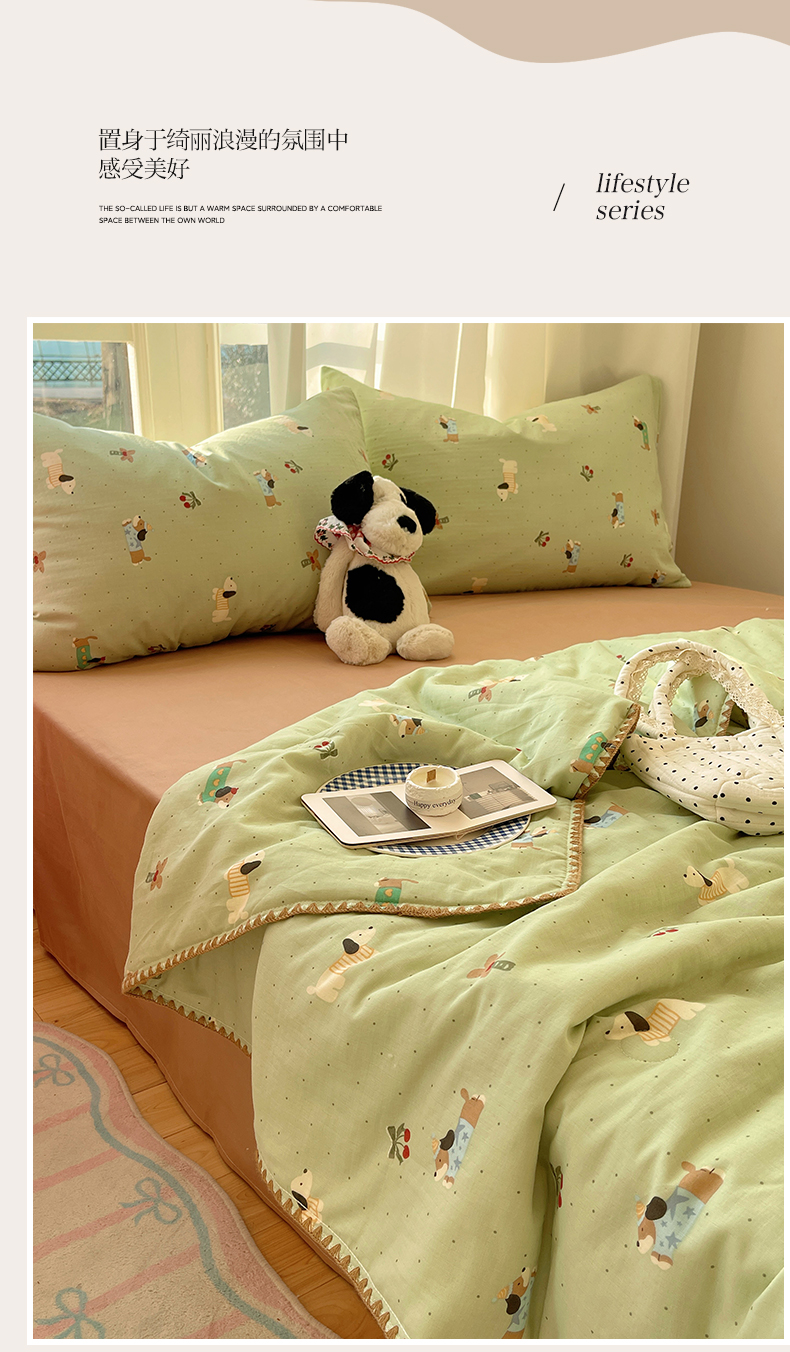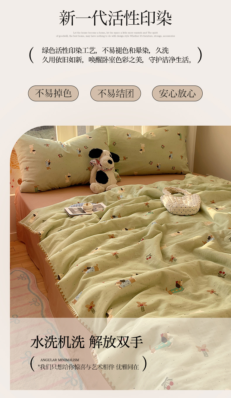 • 91家纺网 家纺一手货源 找家纺 一加一 2025A类全棉有氧双层纱印花夏被 汪汪家族