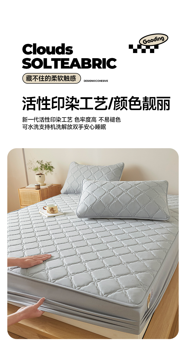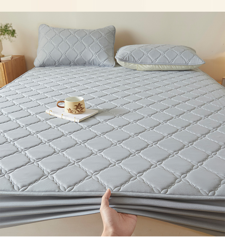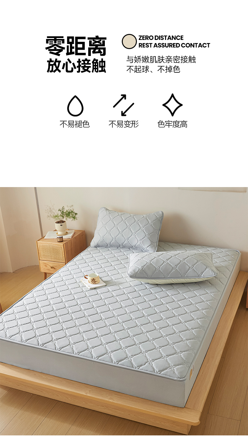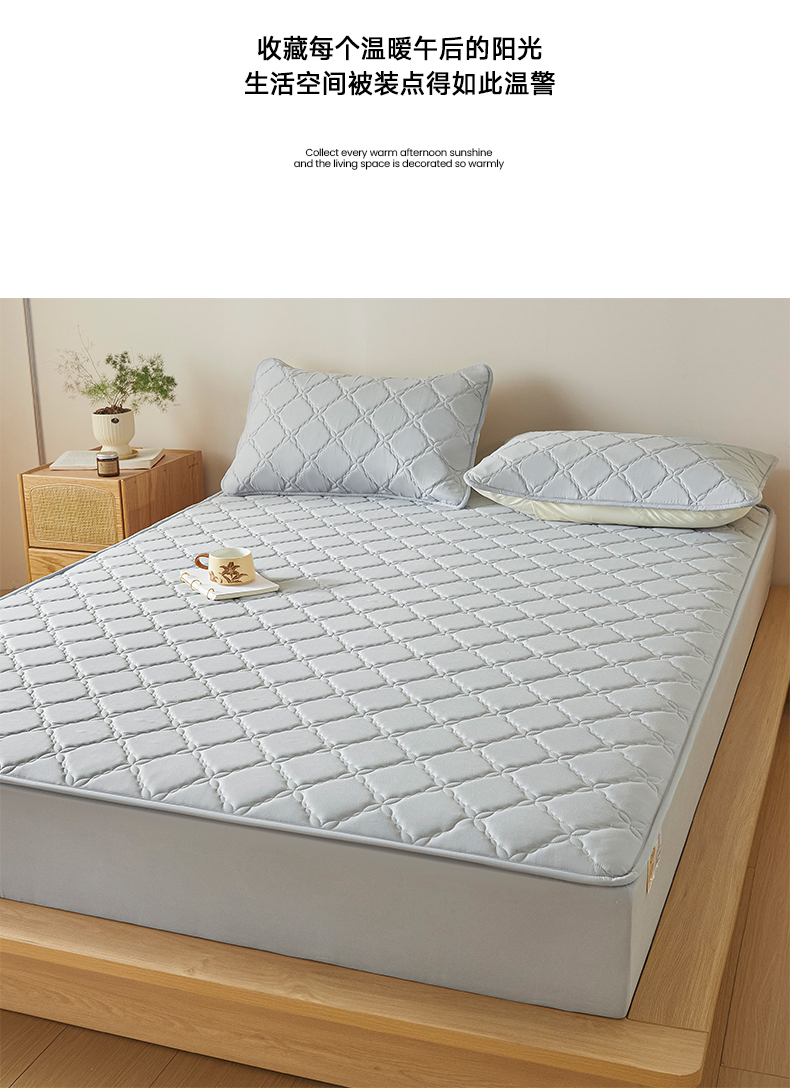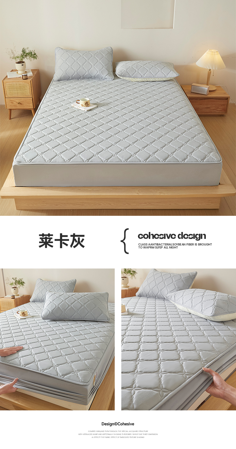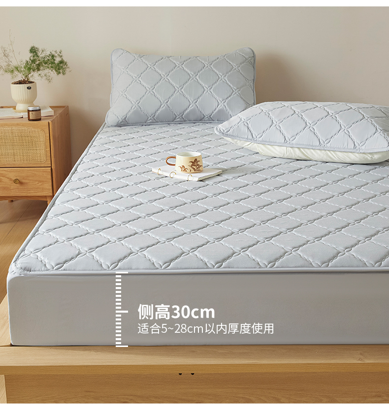 当前位置: 91家纺网 > 商品网购 > 床品套件 > 三件套 > 摩妮卡 2025新款亲肤防水夹棉床笠床垫三件套 莱卡灰