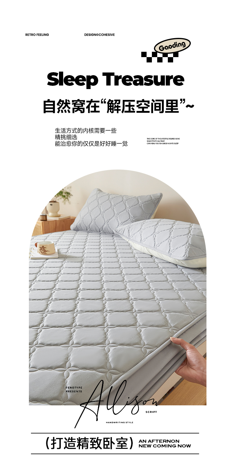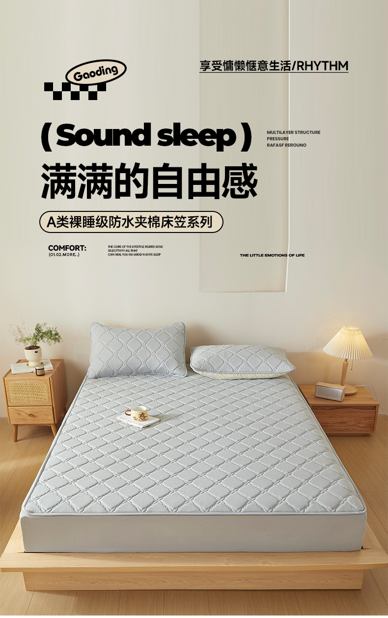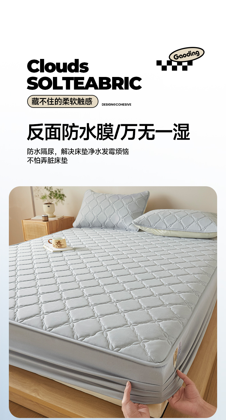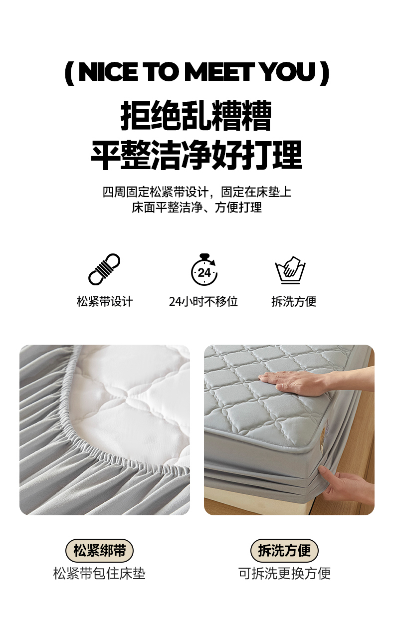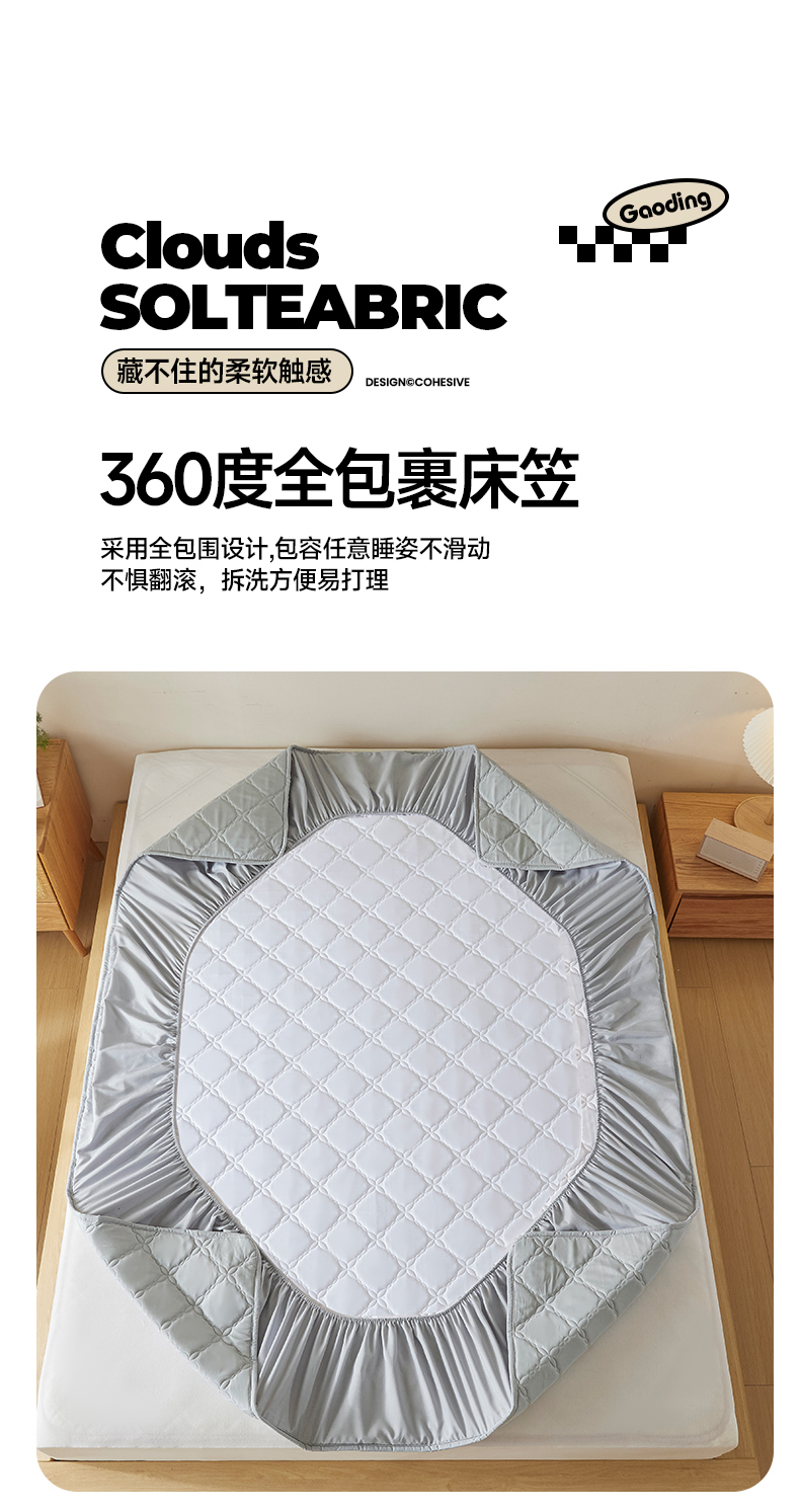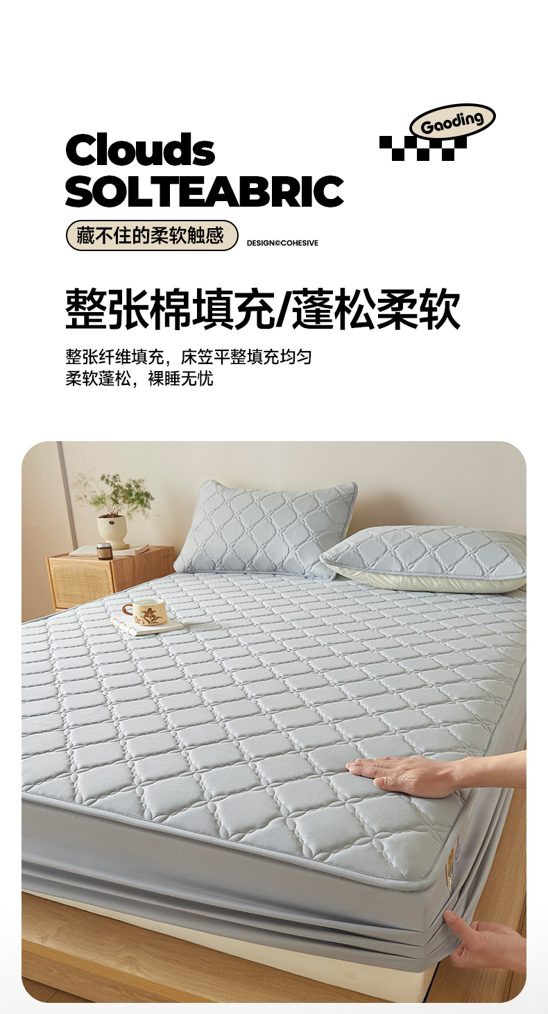 当前位置: 91家纺网 > 商品网购 > 床品套件 > 三件套 > 摩妮卡 2025新款亲肤防水夹棉床笠床垫三件套 莱卡灰
