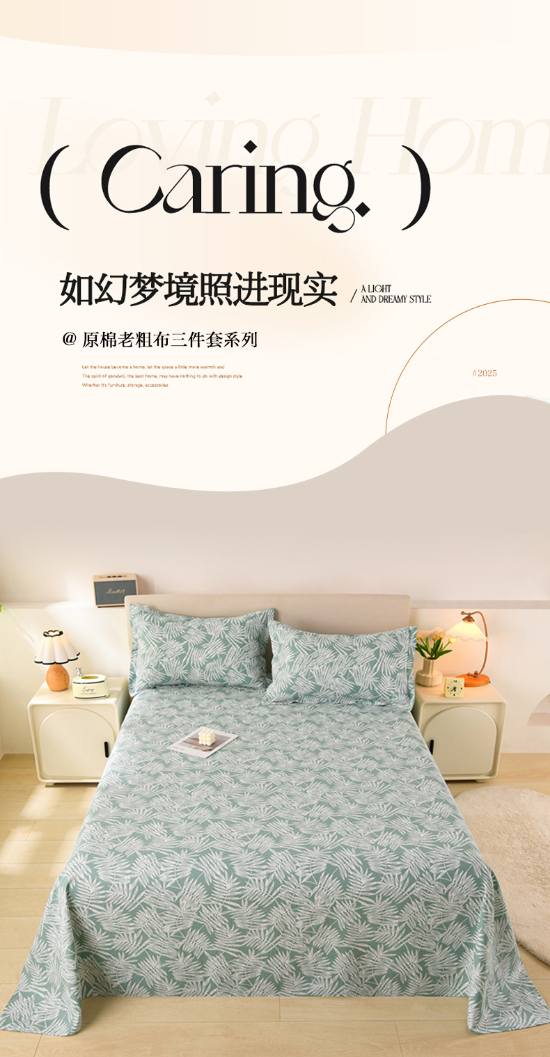 当前位置: 91家纺网 > 商品网购 > 床品套件 > 三件套 > 润淳家居 2025新款老粗布三件套及单品 梦幻叶