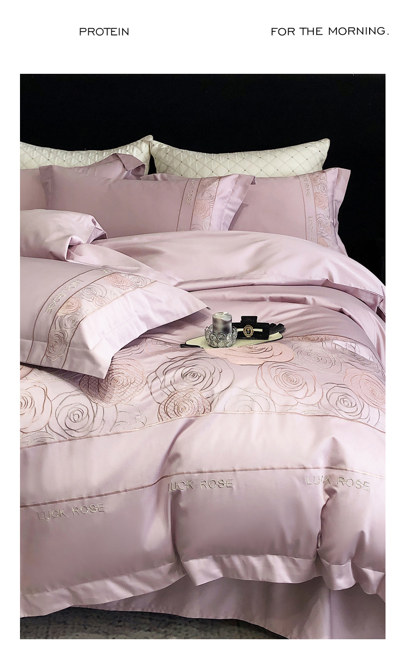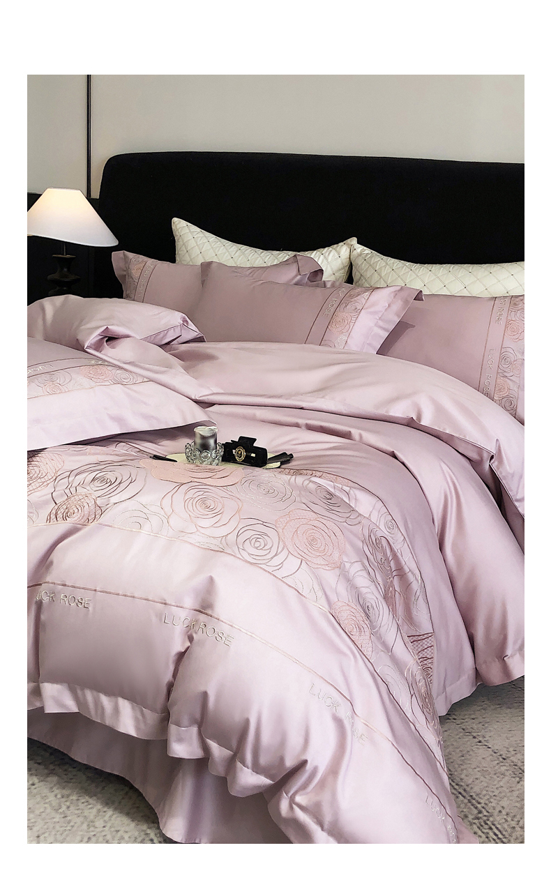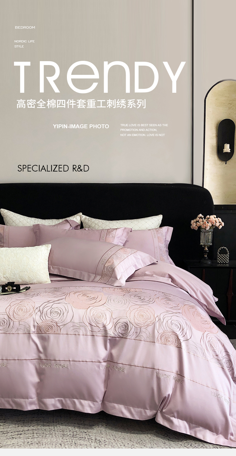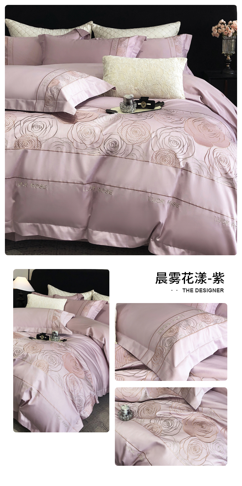 商品名称:慕晨家纺 2025新款40s全棉重工刺绣四件套 晨雾花漾 紫