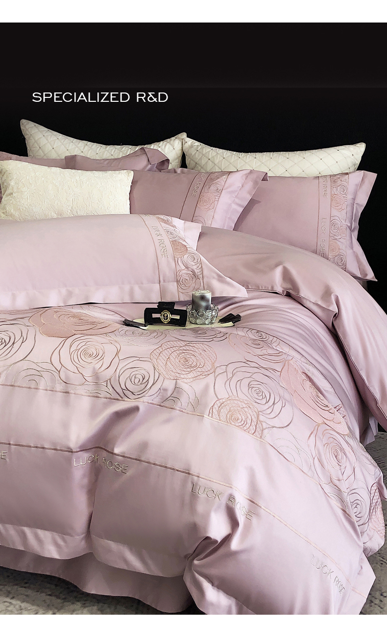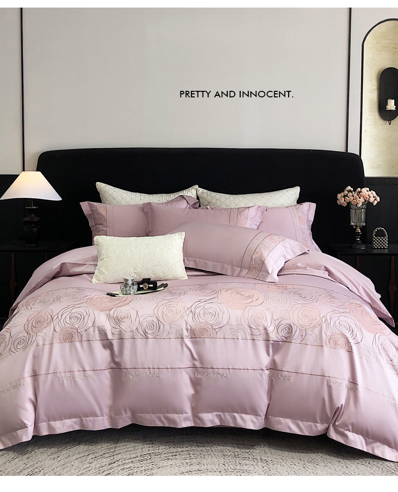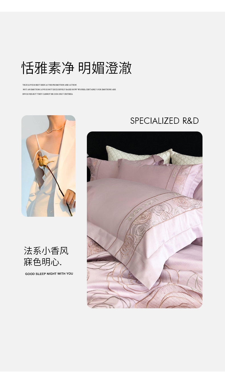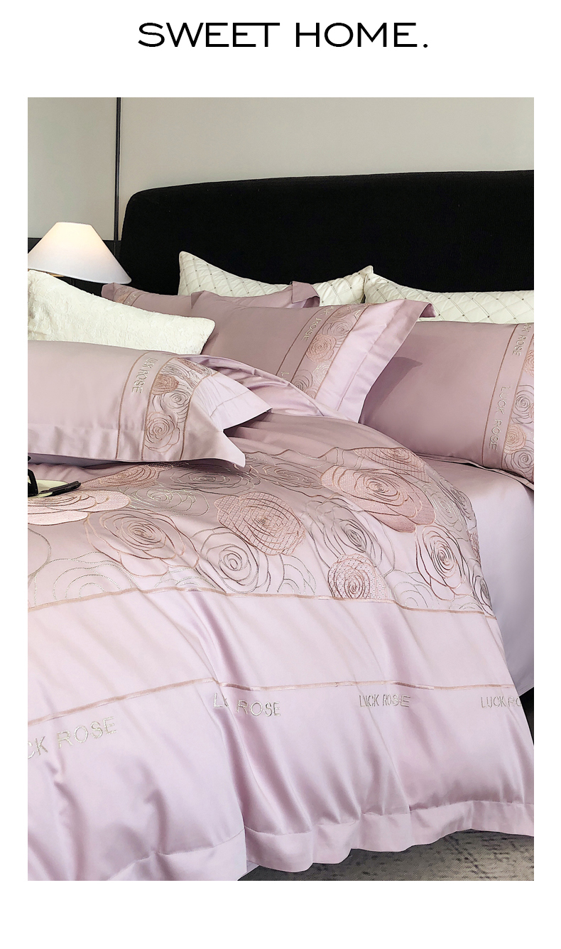 商品名称:慕晨家纺 2025新款40s全棉重工刺绣四件套 晨雾花漾 紫
