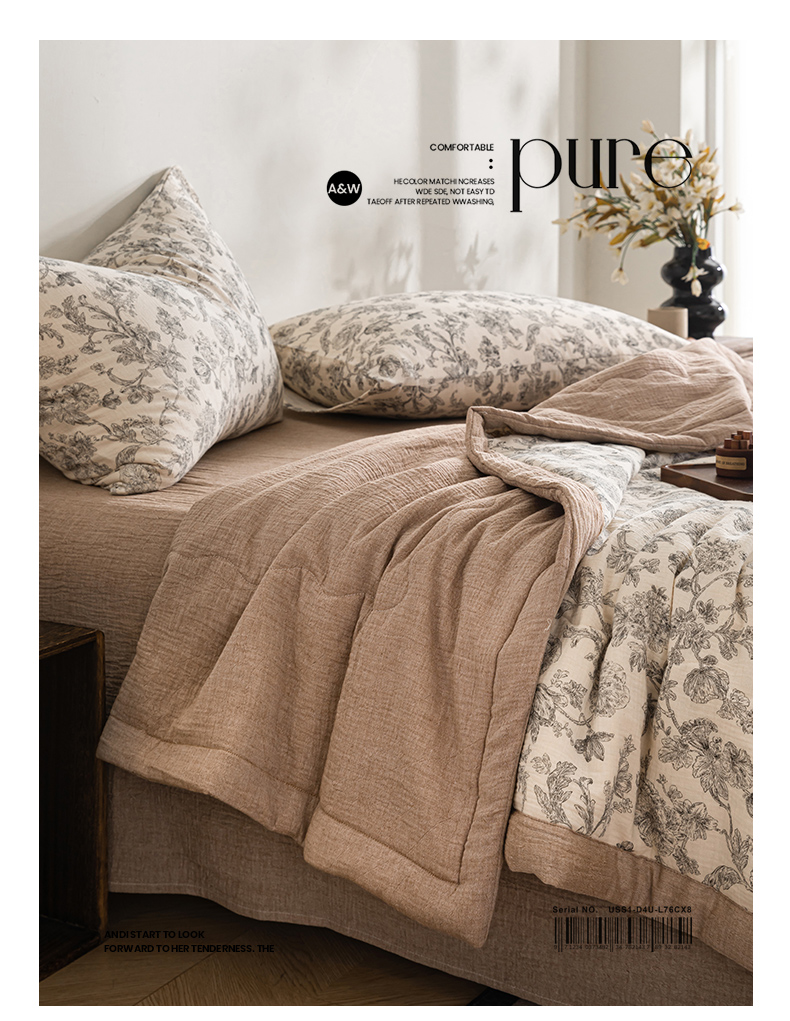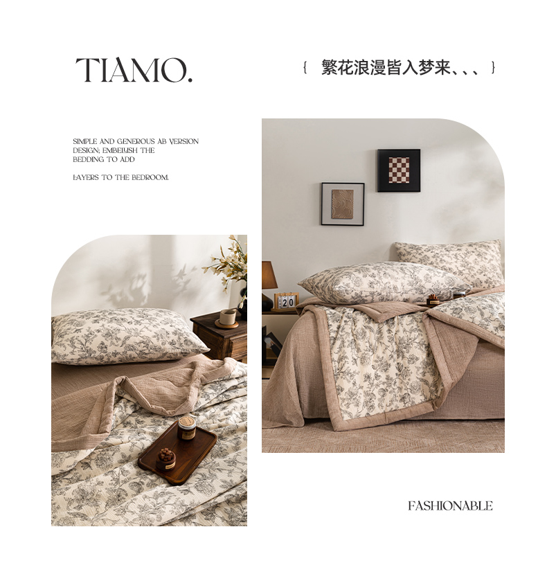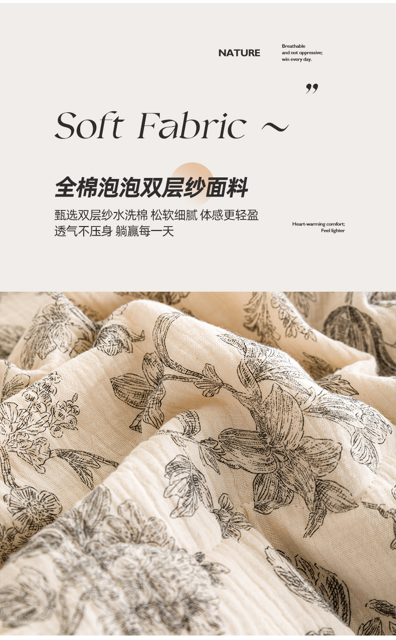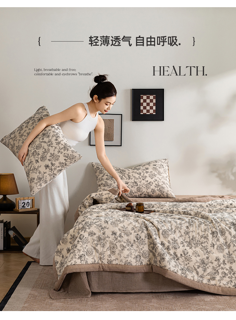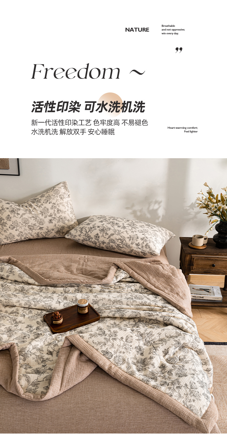 (总)吾诺家居 2026新款全棉色织提花三层纱夏被夏凉被空调被-华美,波点-灰,芳菲-咖,花影-绿,简森-灰,恋恋花开,萌宝,梦幻花园-粉,梦幻花园-灰,太阳花,藤叶-咖,香水繁花-绿