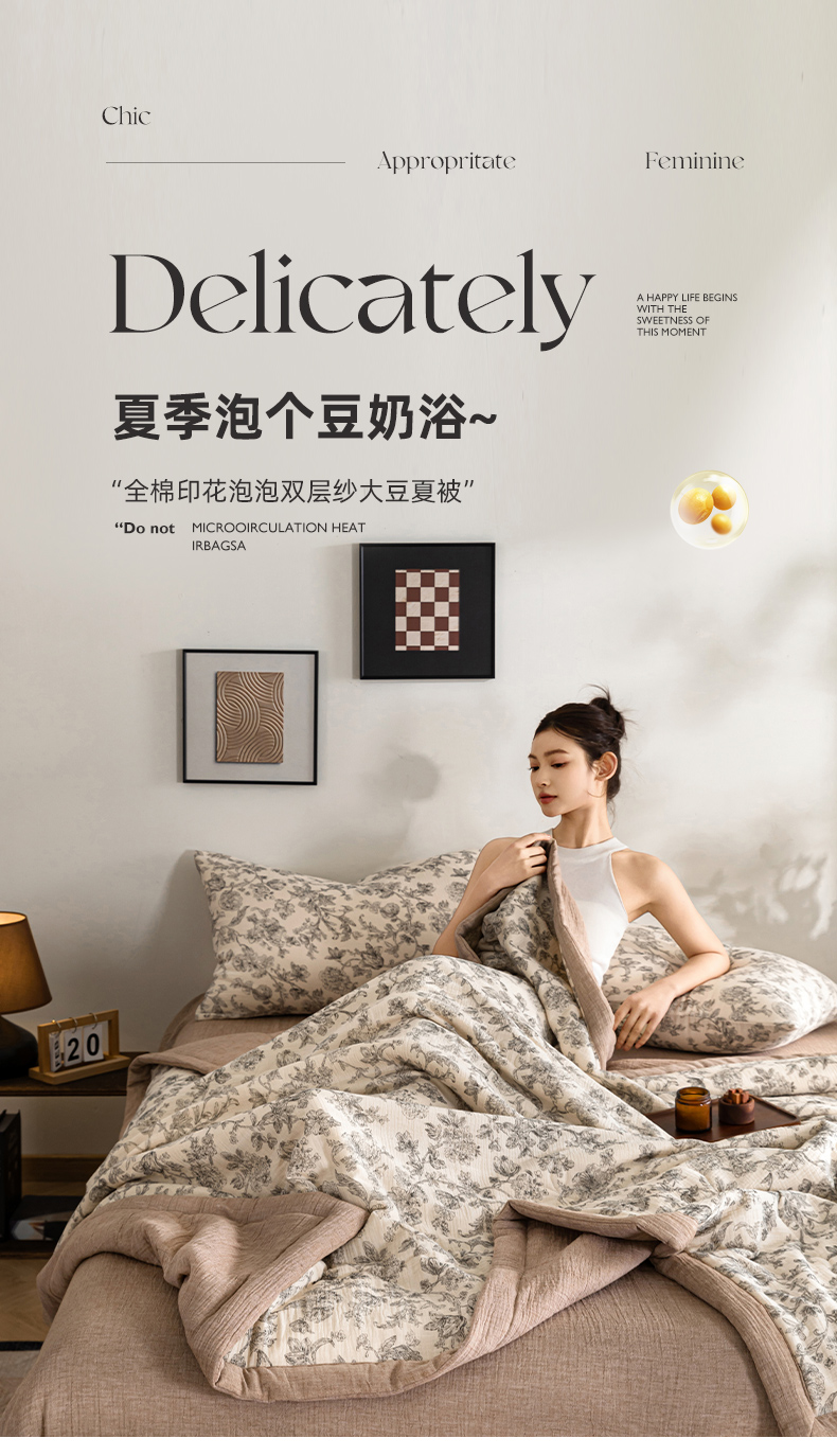 商品名称:吾诺 2025新建全棉印花泡泡双层纱大豆夏被子被芯全棉夏被四件套夏凉被空调被 蝶恋