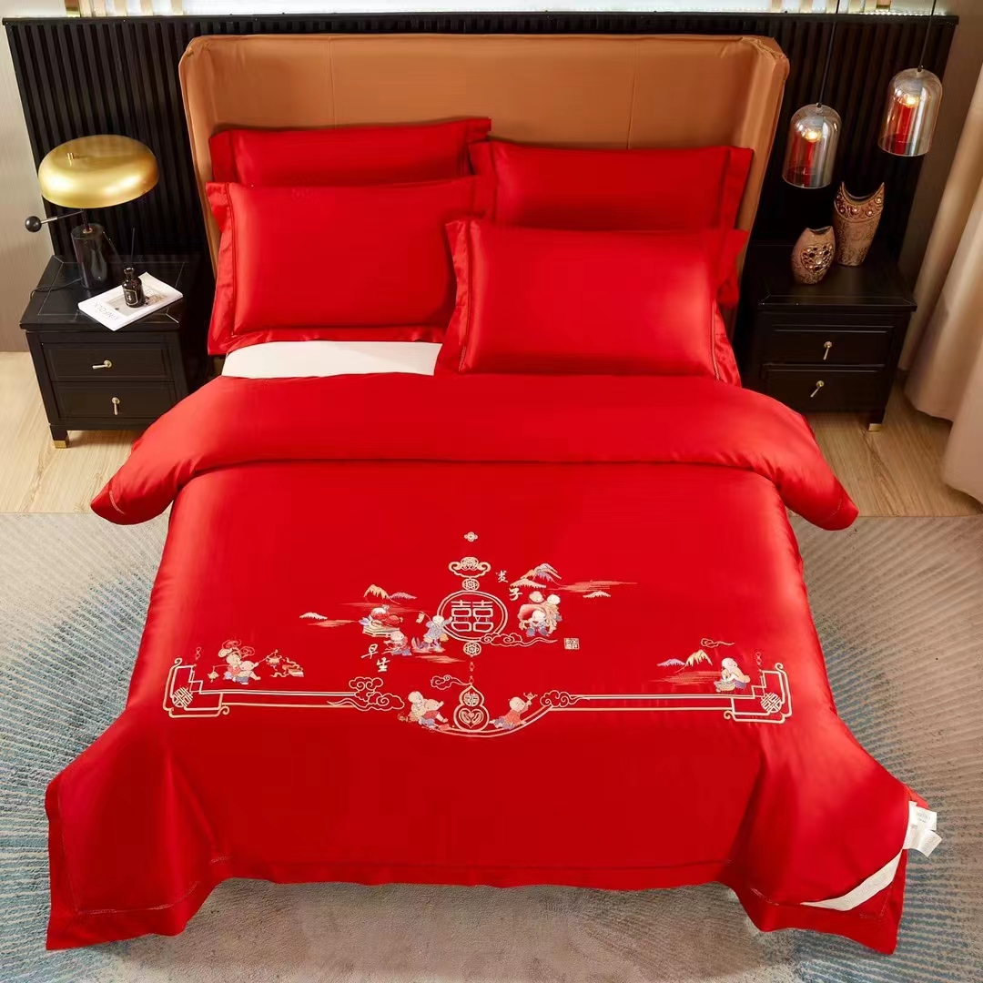婚庆绣花订花蚕丝被-百子迎福