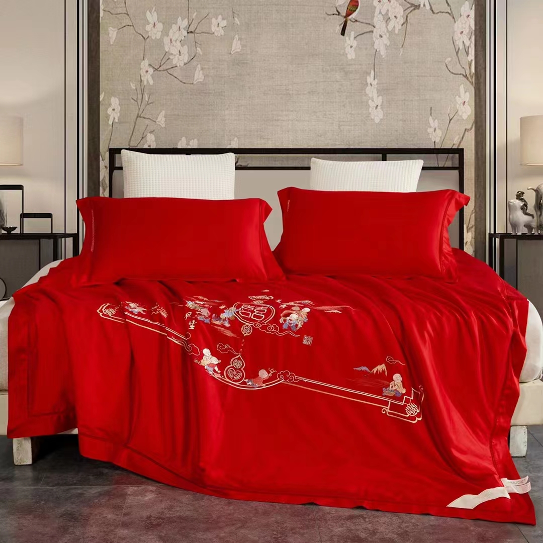 商品名称:缦纯家纺 2025新款婚庆款蚕丝被 100柞蚕丝被 保真可检测 手工蚕丝被 婚庆被 百子迎福