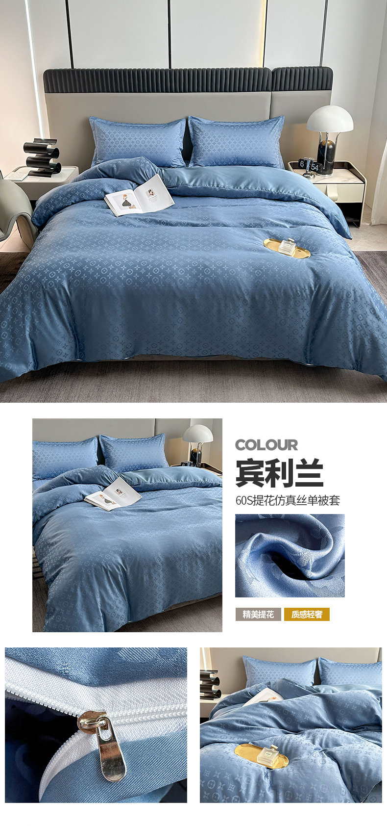 商品名称:云玲时尚 2025新款大牌风60S提花纯色轻奢贡缎水洗真丝单品被套 宾利兰