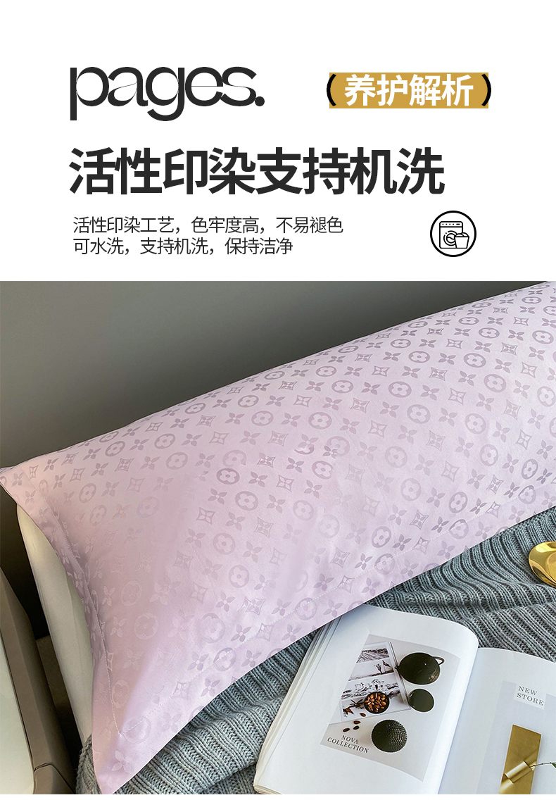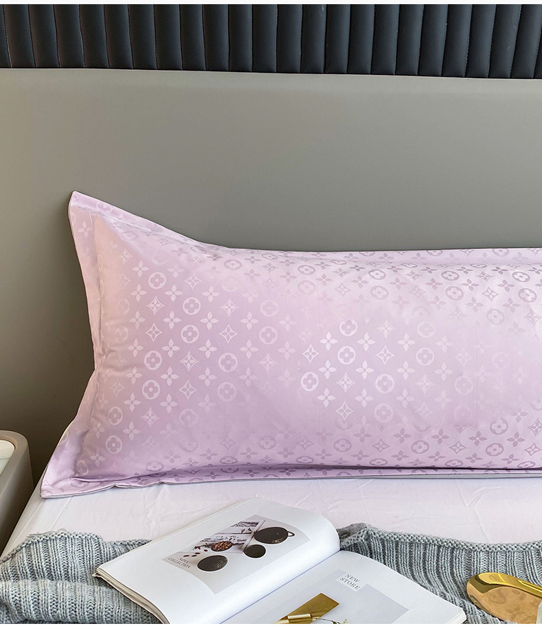 云玲时尚 2025新款60S提花防水面料大牌贡缎轻奢长枕套 烟灰紫