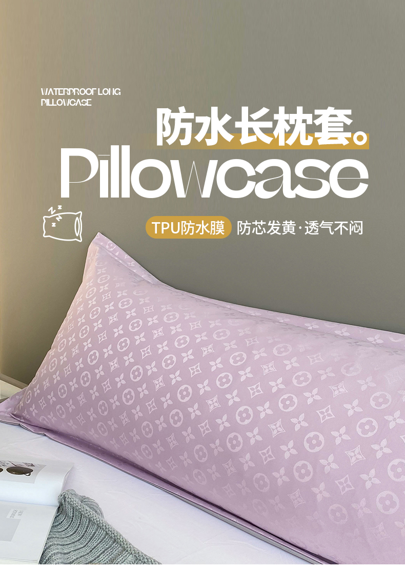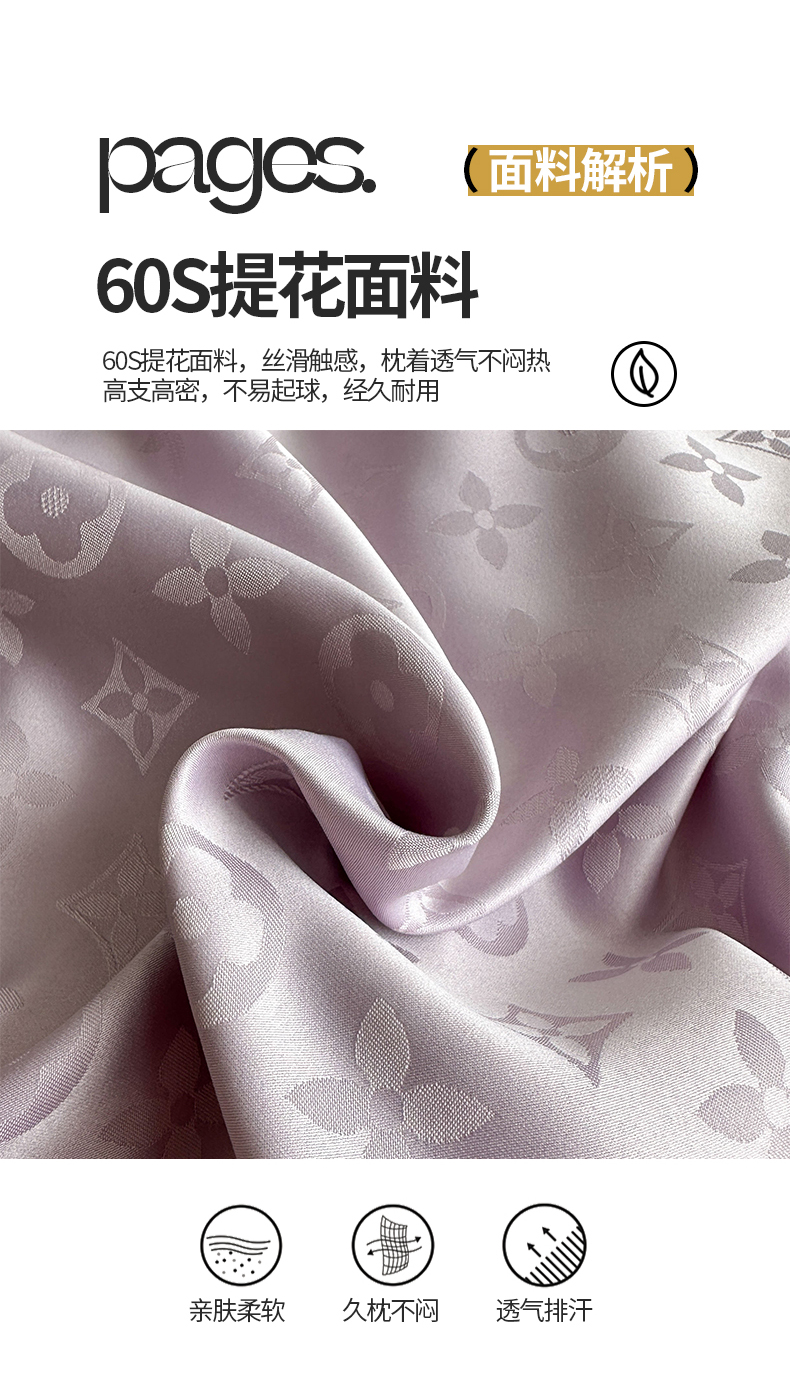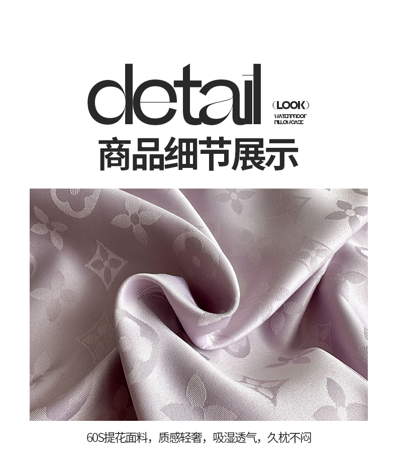 商品名称:云玲时尚 2025新款60S提花防水面料大牌贡缎轻奢长枕套 烟灰紫