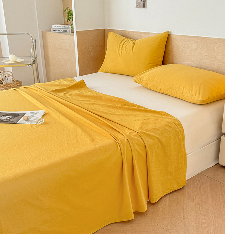 • 91家纺网 家纺一手货源 找家纺 晓时候 2025新款100%全棉色织水洗棉床单全棉床单纯棉床单 奶黄