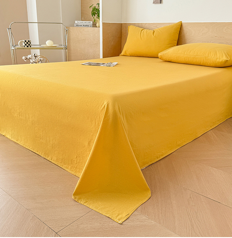晓时候 2025新款100%全棉色织水洗棉床单全棉床单纯棉床单 奶黄
