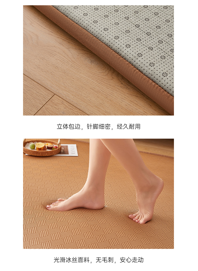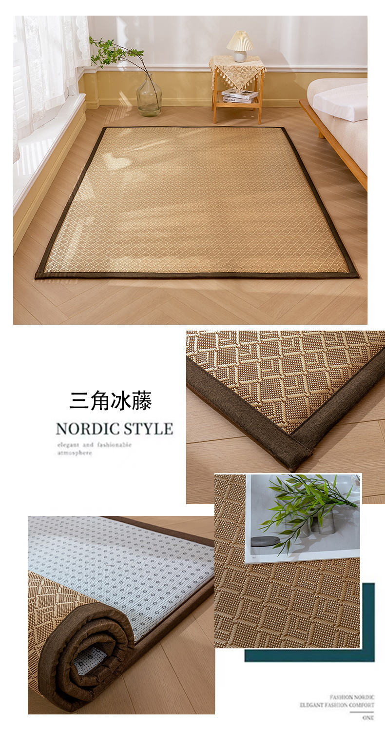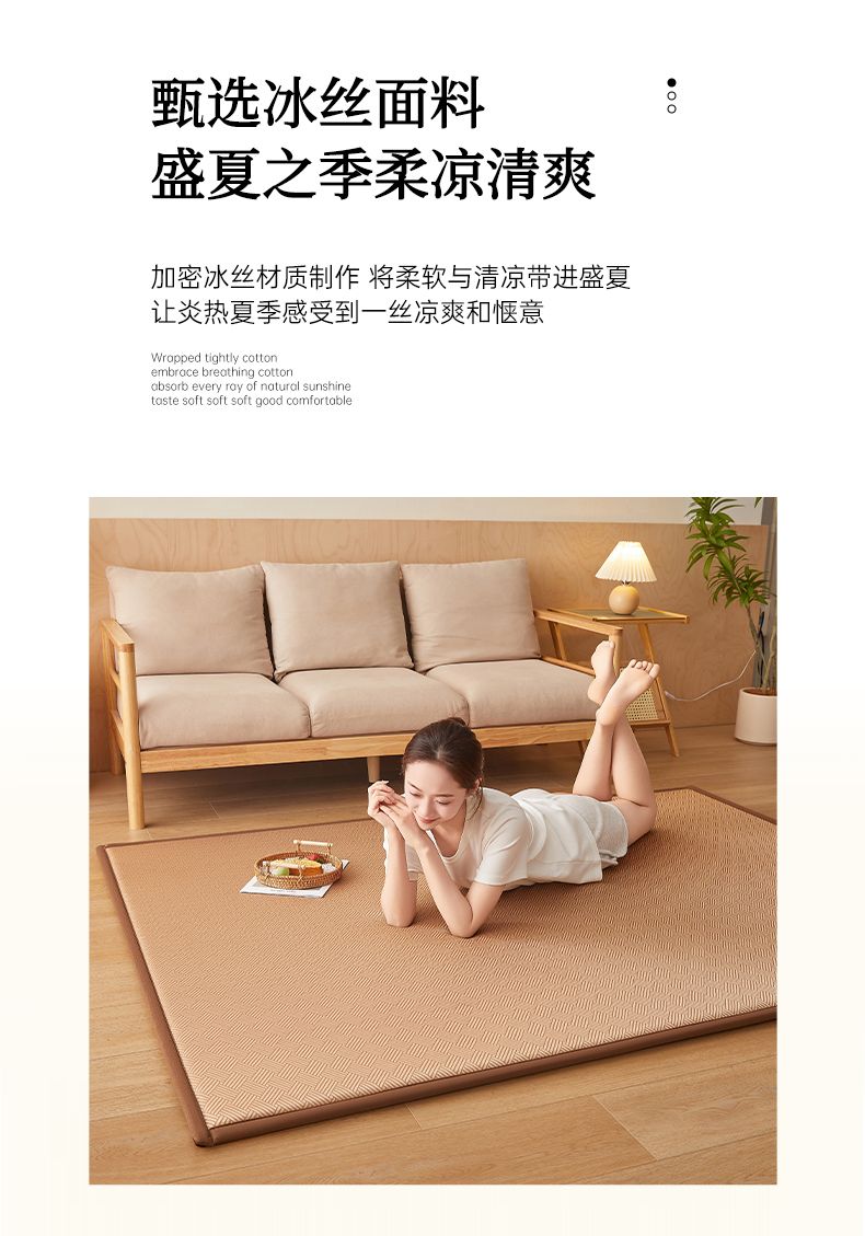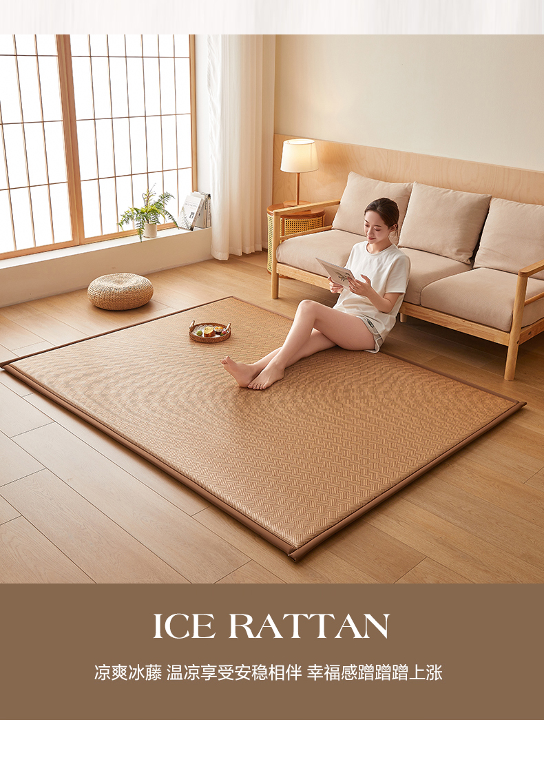 当前位置: 91家纺网 > 商品网购 > 床上用品 > 凉席 > 凉席套件 > 2025新款包边工艺凉感冰藤地铺睡垫系列凉席地垫 冰丝饼干咖