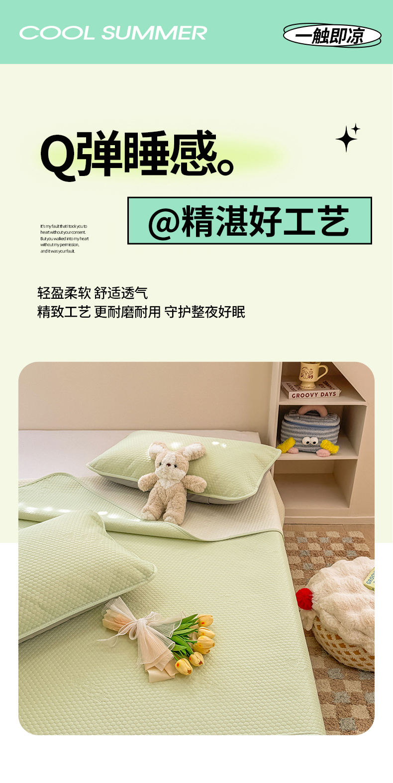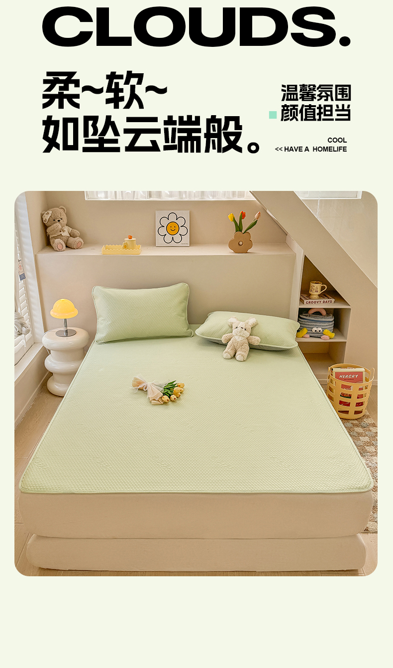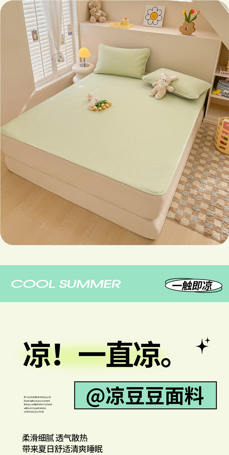 当前位置: 91家纺网 > 商品网购 > 床上用品 > 凉席 > 凉席套件 > 阿亮家居 2025新款凉席凉豆豆单包边可水席单凉席三件套冰豆豆席 小米粒清新绿床席款