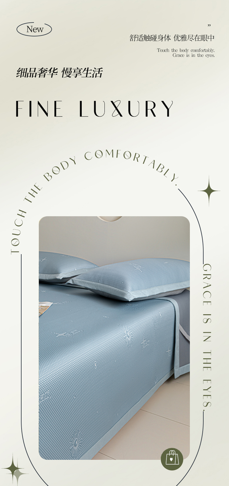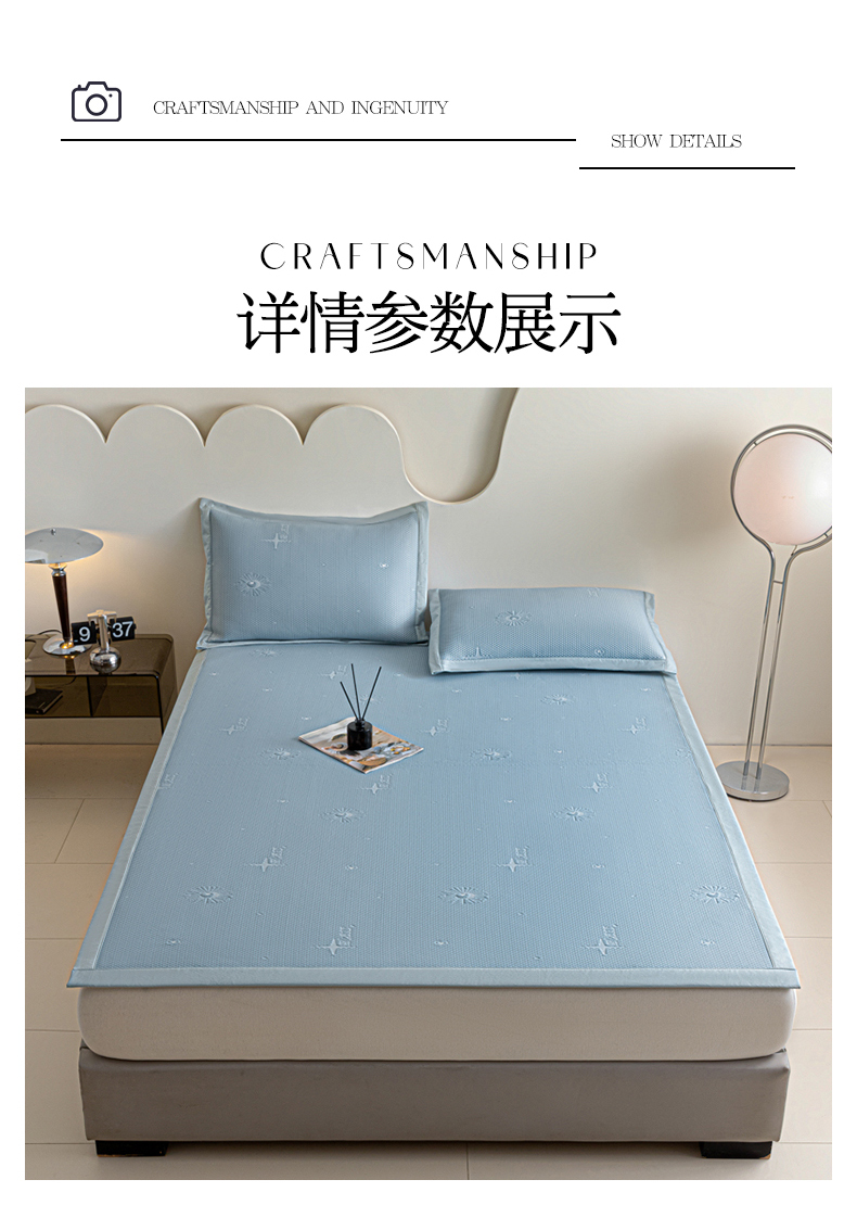 (总)阿亮家居 2025新款A类母婴级1800D碳光小鹿冰丝席凉席,宾利蓝,冰川灰,繁星绿,山茶粉,香槟金