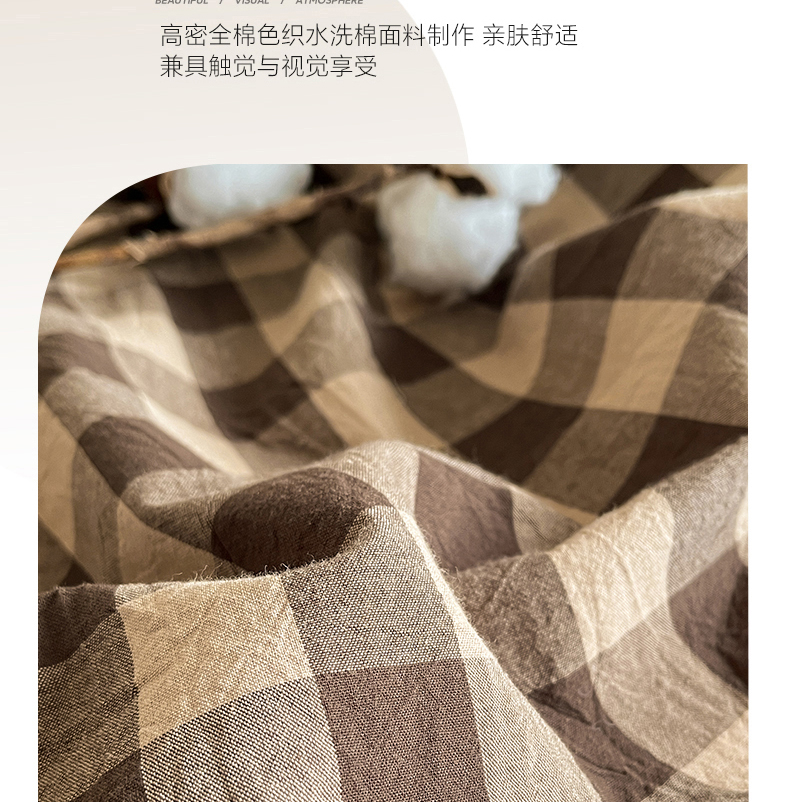 • 91家纺网 家纺一手货源 找家纺 21度C 2025春夏新款复古风全棉纯棉A类母婴级单被套 被套单件 夏沫咖