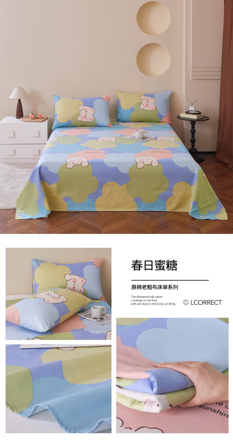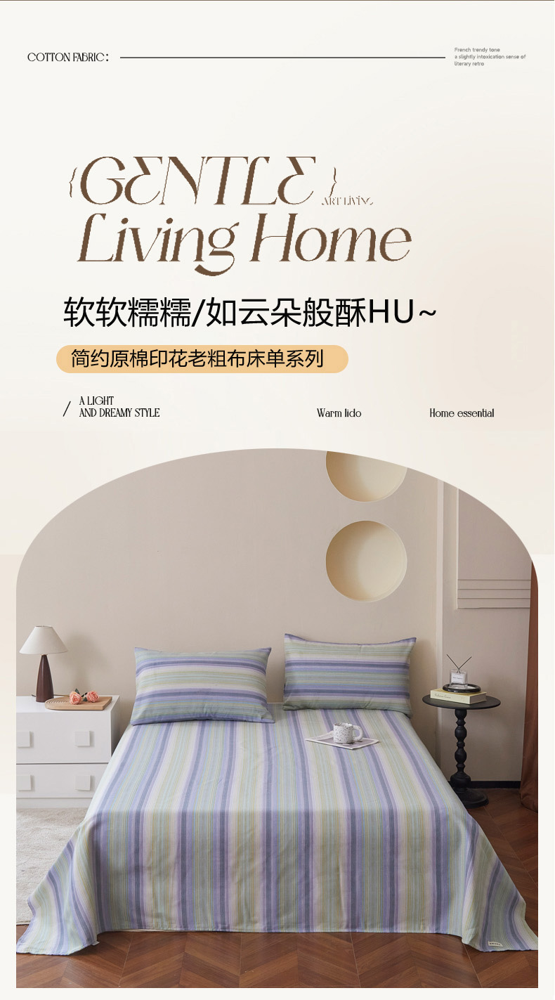 • 91家纺网 家纺一手货源 找家纺 绒艺席业 2025新款简约原棉印花老粗布床单 森沐