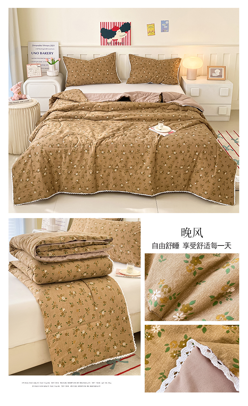 商品名称:佰亿莱 2025春夏新款水洗棉羽丝绒小花边夏被夏凉被空调被 晚风
