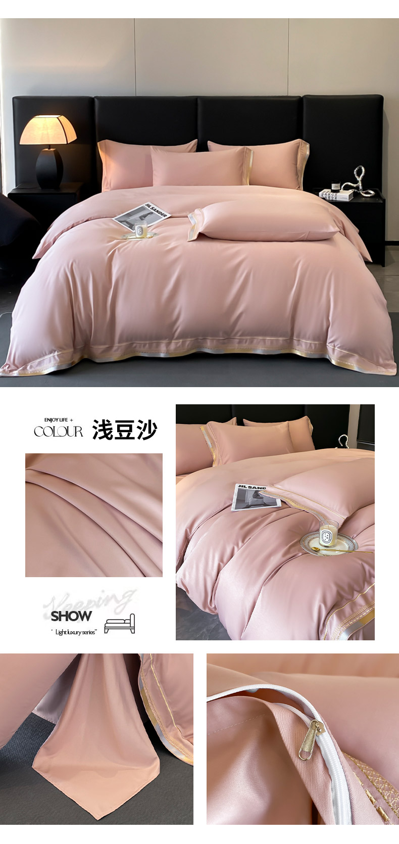 (总)金阳光家纺 2025新款莱赛尔天丝刺绣四件套,浅玉,黛蓝,浅豆沙,浅灰,浅米白粉,浅天蓝
