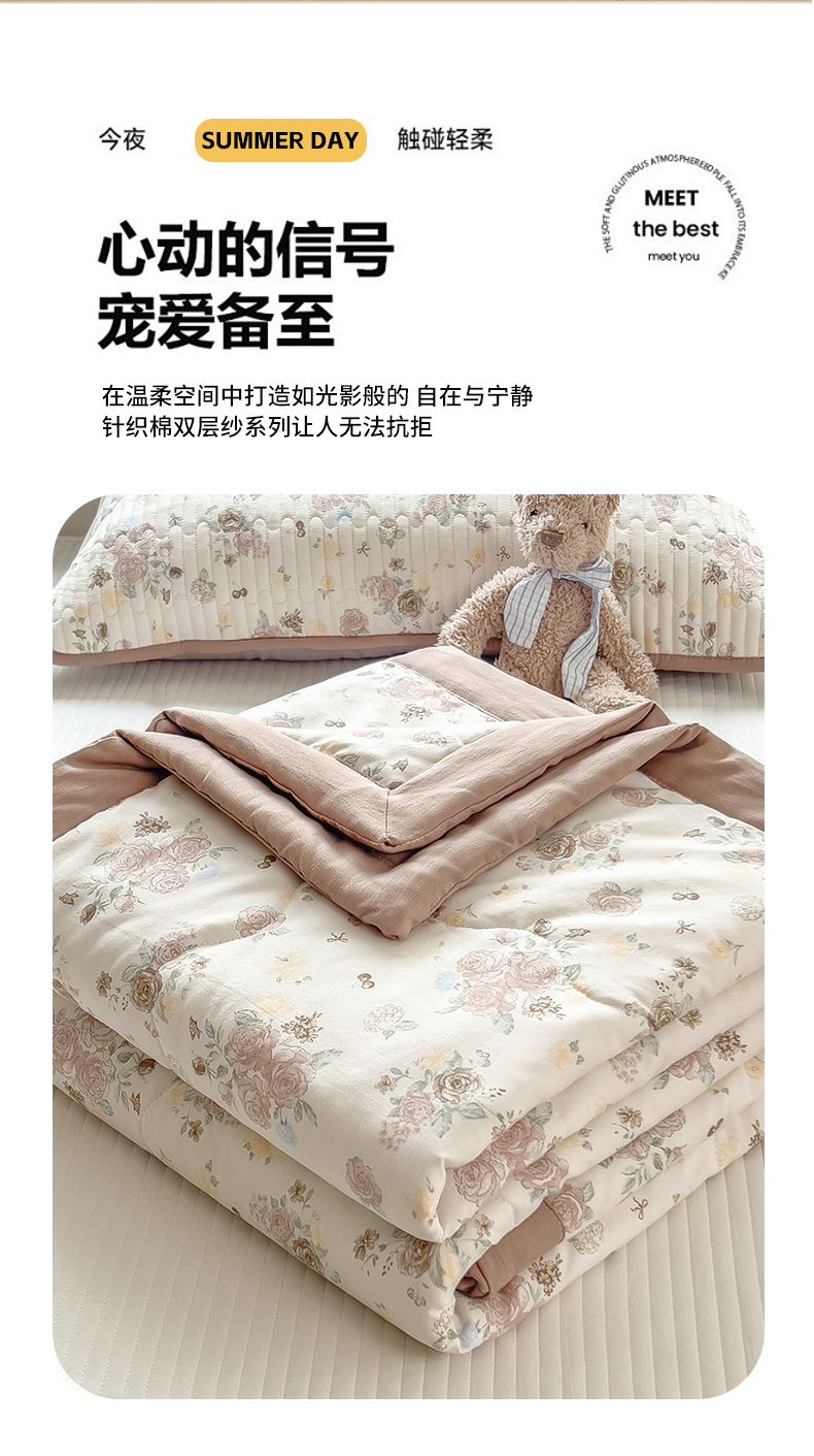 • 91家纺网 家纺一手货源 找家纺 慕木 2025春夏新款双层纱针织棉夏被夏凉被空调被 春风里