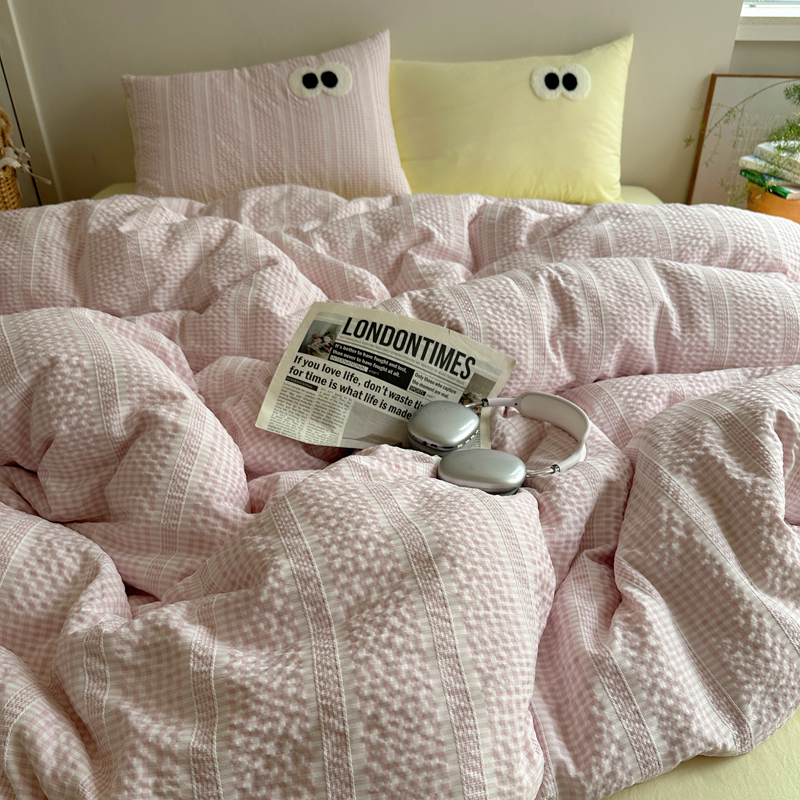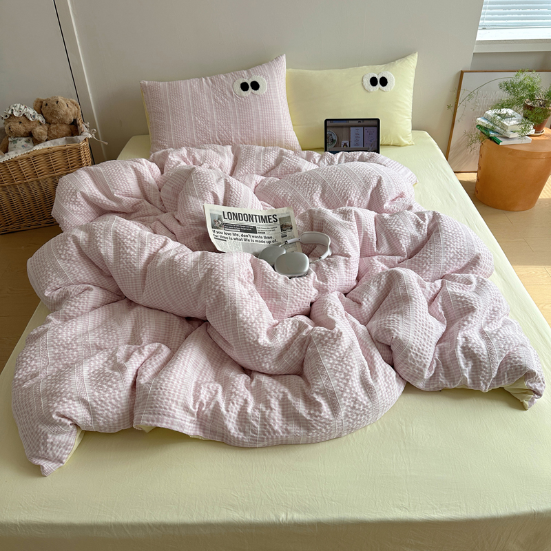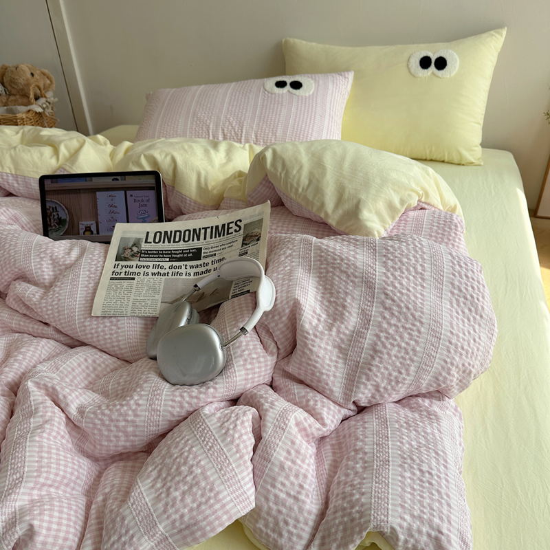 (总)顾里家纺 2024新款格子蝴蝶结毛巾绣牛奶绒四件套,粉格蝴蝶结,粉蓝蝴蝶结,黄格蝴蝶结,蓝格蝴蝶结,绿格蝴蝶结