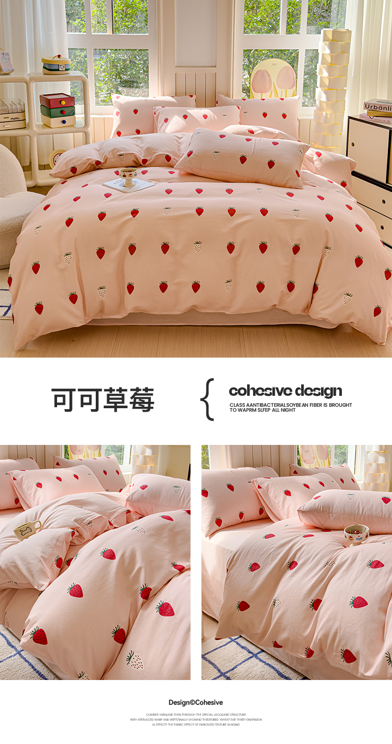 当前位置: 91家纺网 > 商品网购 > 床品套件 > 四件套 > 全棉普通四件套 > 澳梵家居 2025新款小清新全棉印花四件套 可可草莓