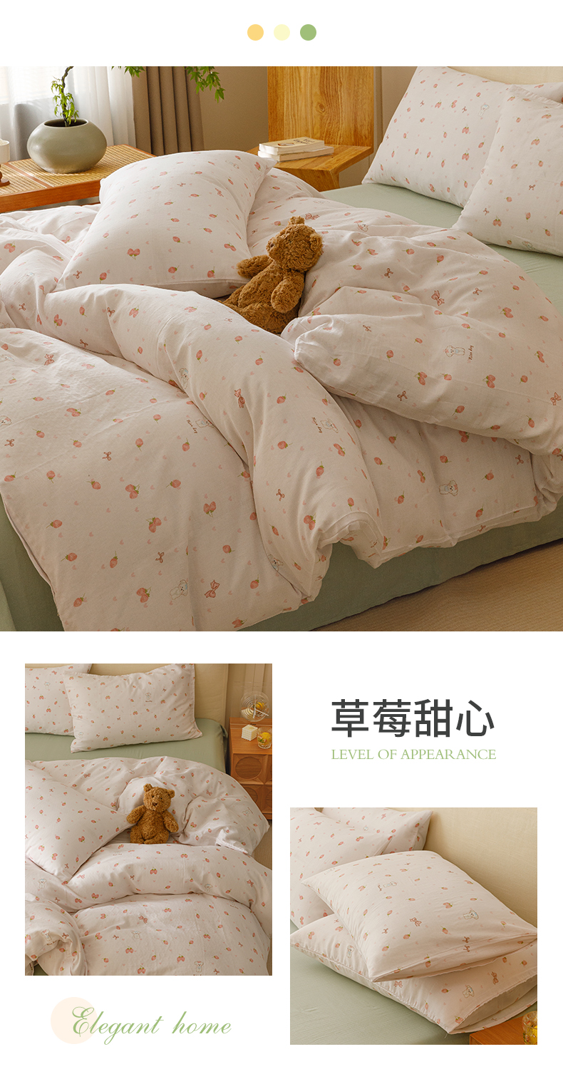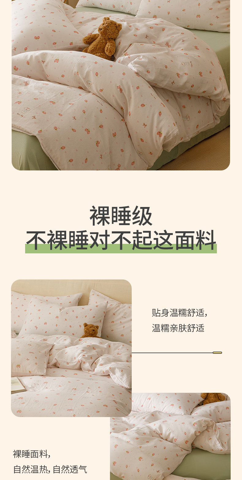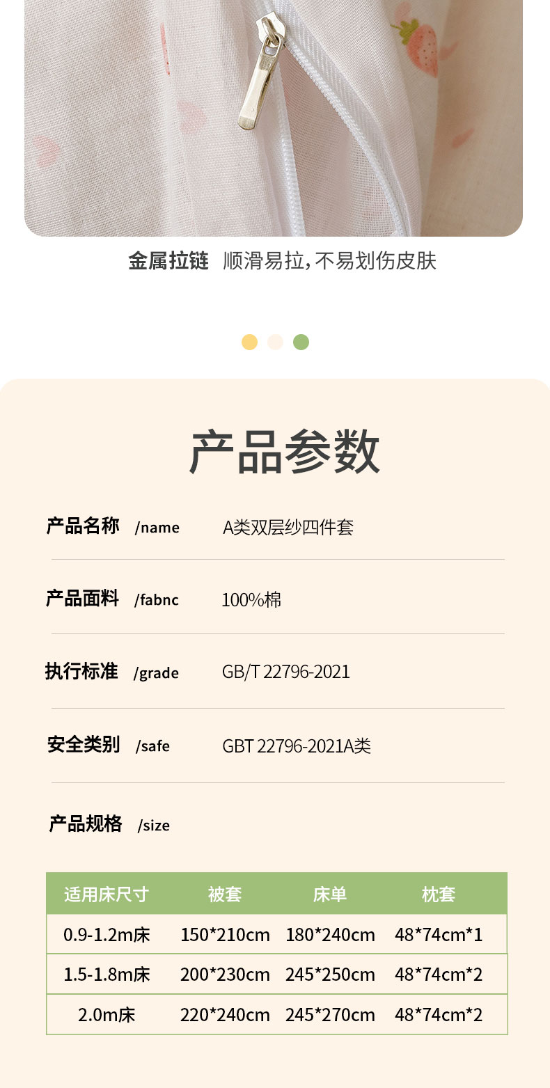商品名称:瑞米家居 2024新款亲肤舒适A类双层纱四件套 草莓甜心