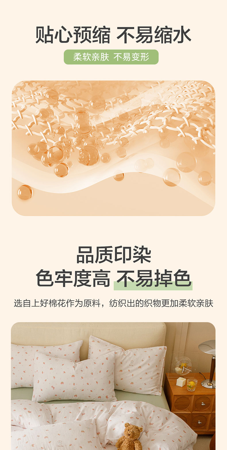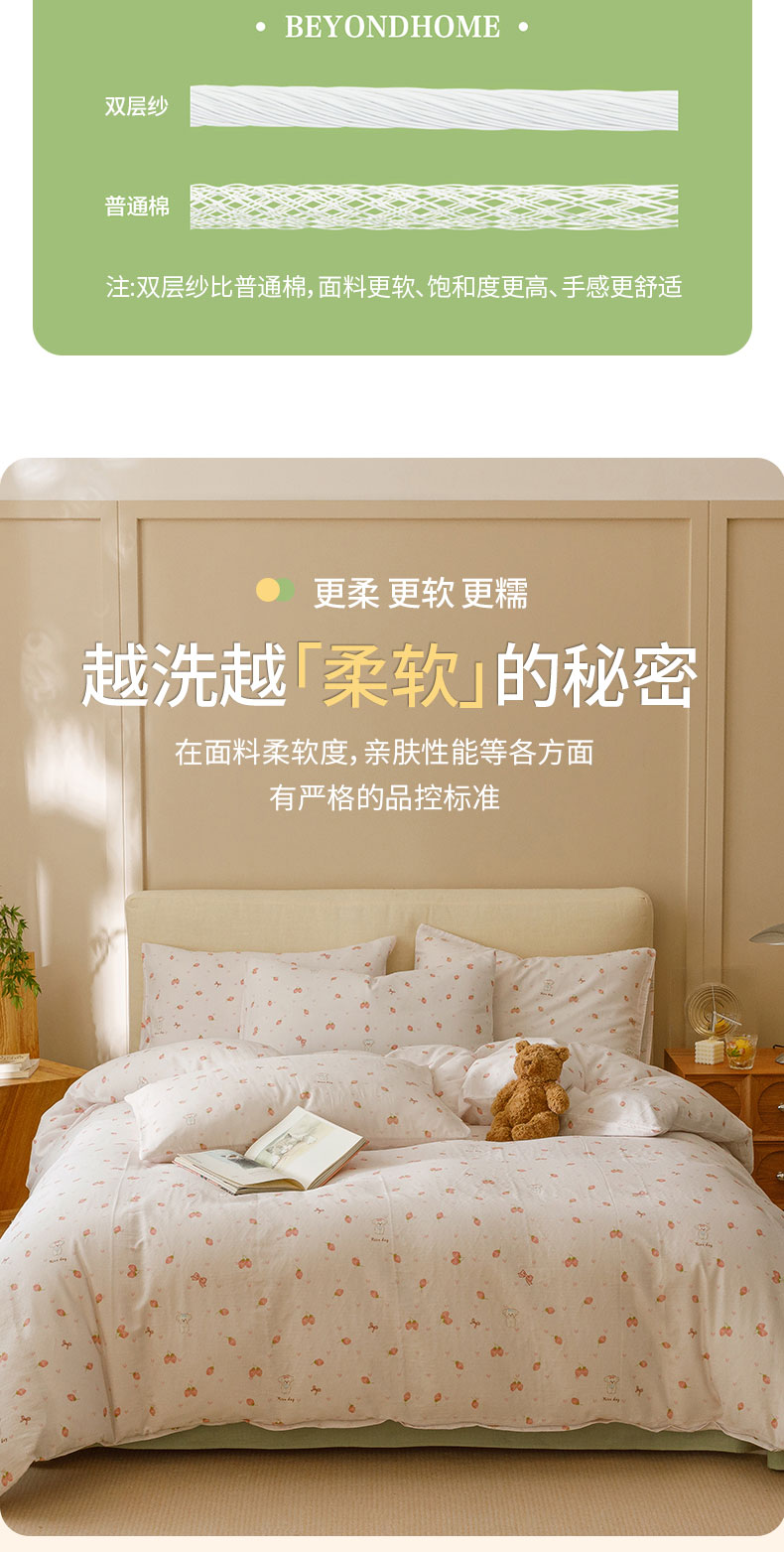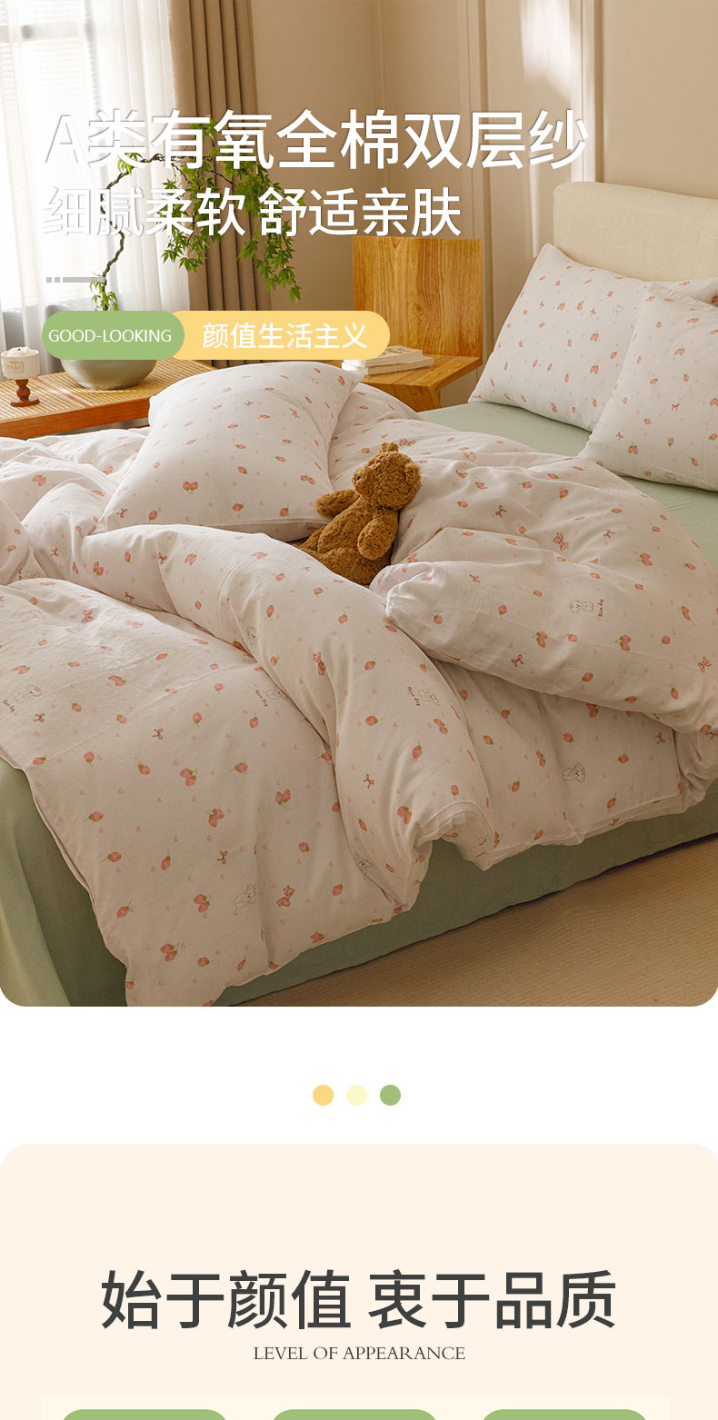 (总)瑞米家居 2024新款亲肤舒适A类双层纱四件套,草莓甜心,格子熊猫,花晨,花园小兔,绿意盎然,浅忆,苏夏,田园印象,甜蜜樱桃